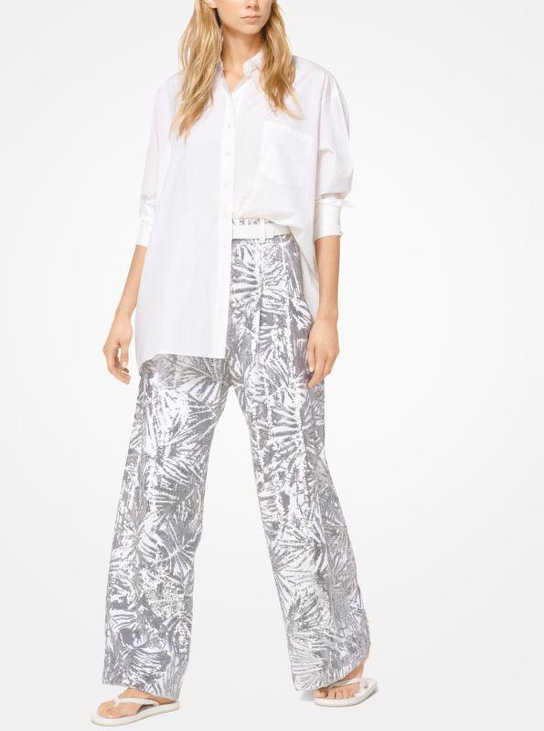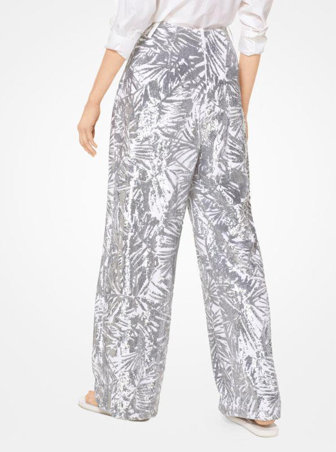 Leaf Sequined Double Crepe-Sablé Pants