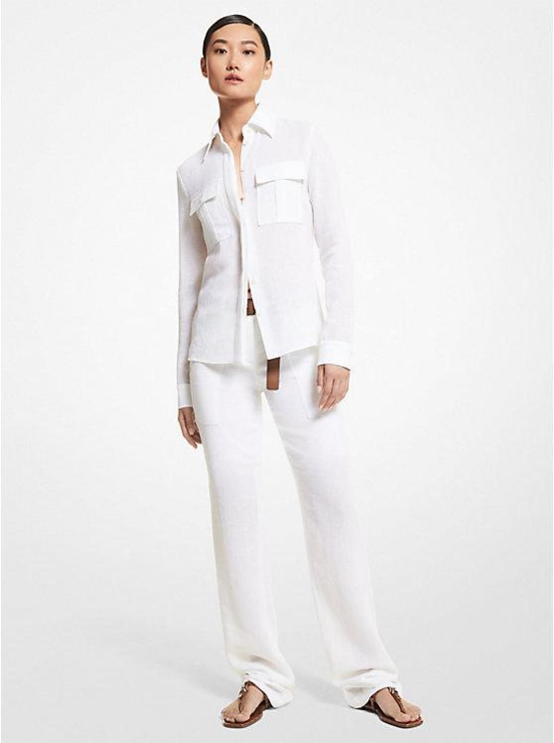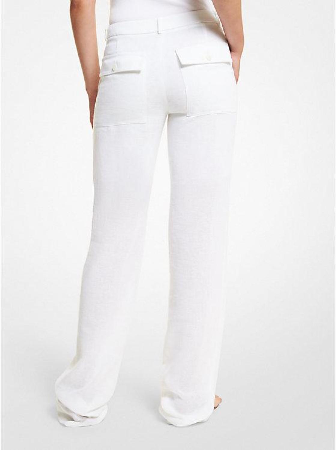 Tailored in Italy, these pure linen pants will make warm-weather dressing a luxurious breeze. Buttoned flap pockets provide utilitarian appeal, while the neutral hue ensures styling versatility. Create an of-the-moment pairing with the matching shirt and leather extras.