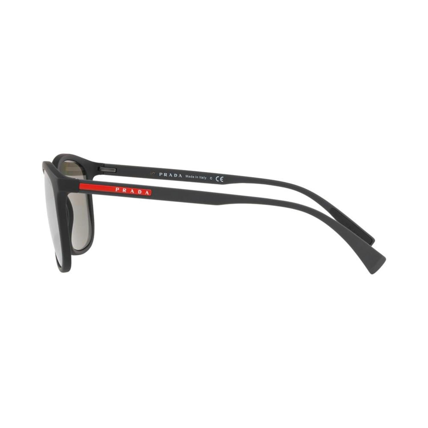 The high-performance distinctive "Red Stripe" logo of Prada Linea Rossa is a lifestyle sunwear collection created for the fashion-forward consumer. For those who he high-performance distinctive "Red Stripe" logo of Prada Linea Rossa is a lifestyle sunwear collection created for the fashion-forward consumer. For those who wear sunglasses for competitive and noncompetitive sports and leisure, Prada Linea Rossa unites both active and leisure lifestyles in an eyewear collection, while holding fast to the unmistakable Prada style. Gender: MALE Frame Style: RECTANGLE Frame Fit: STANDARD Lens Feature: MIRRORED Lens Material: POLYAMIDE Eye/Bridge/Temple: 56/19/140 Case or Microfiber pouch included