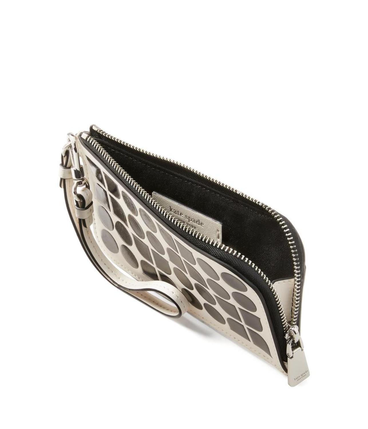 Looking for something trendy and stylish to carry your everyday essentials? Then, here's the Kate Spade New York® Noel Printed Leather Wristlet for you! Featuring a printed leather construction with a dual-tone profile, this sleek bag is structured with an easy-to-access zippered top closure that keeps your stuff perfectly secure. One adjustable wristlet strap. Foiled brand name on the front. Polyester lining. Imported. Please note, the hardware color and interior lining may differ from the color shown in the photo.