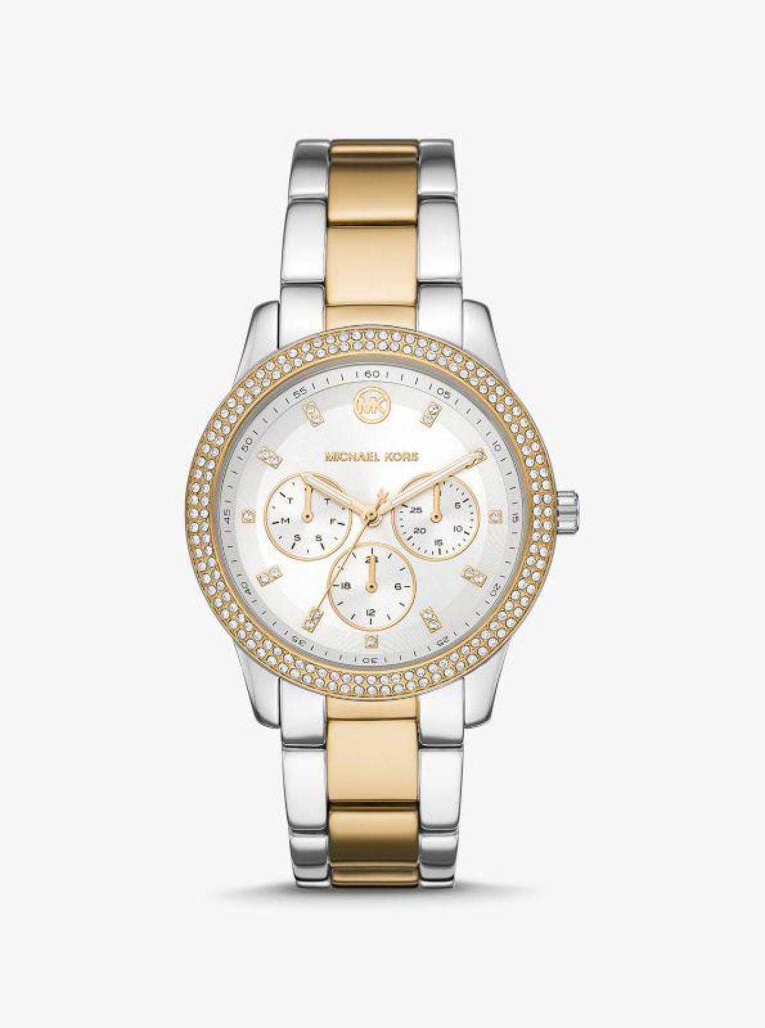• Our Tibby watch will be a timeless addition to your jewelry box. Finished with a luxe pavé topring, it’s crafted from two-tone stainless steel that offers style and durability. Slip it on your wrist to lend instant polish to any outfit.