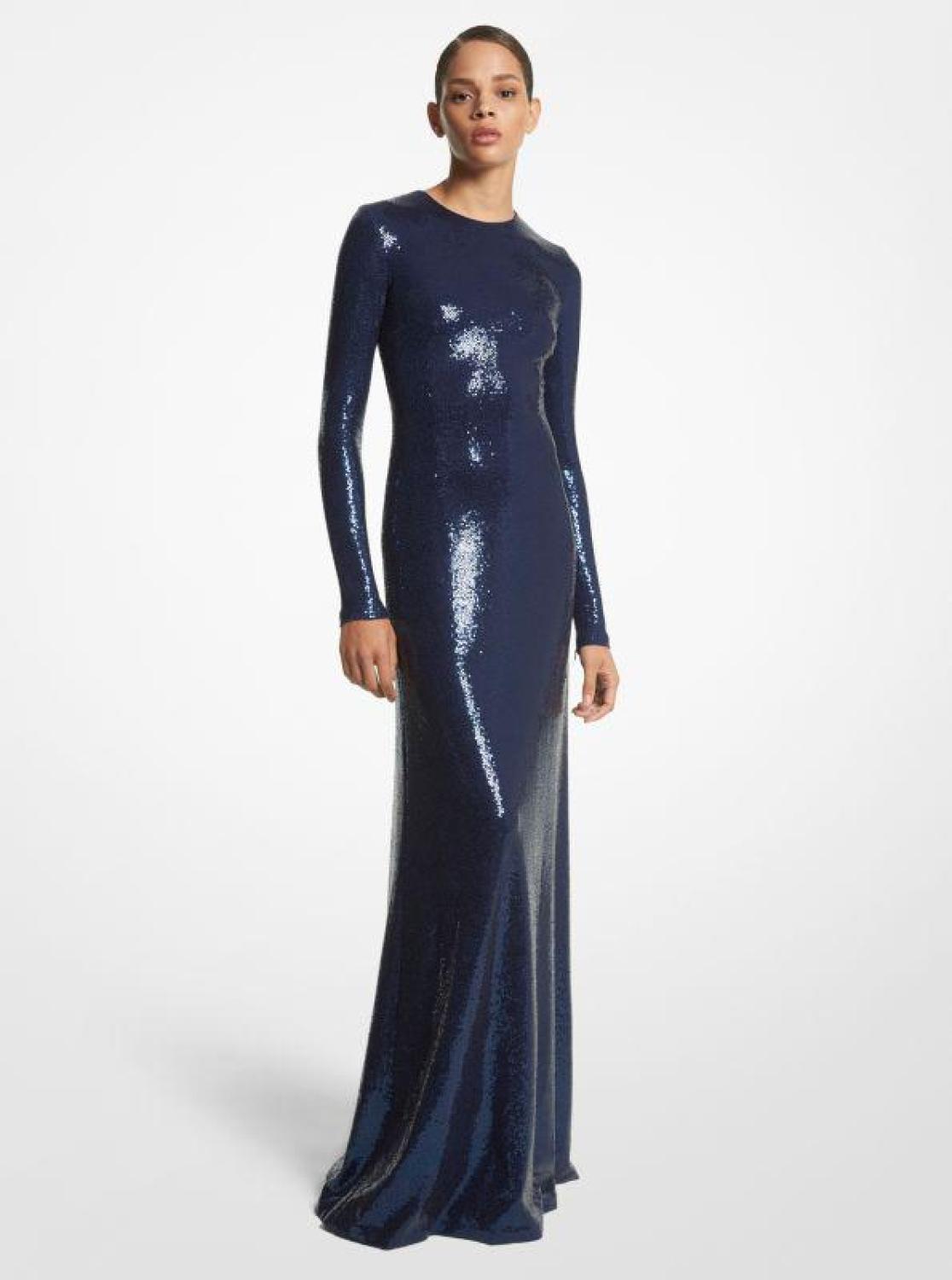Embrace the season’s bold attitude in this eye-catching gown. Covered in hundreds of intricately placed paillettes, it’s crafted in Italy from body-sculpting matte jersey that smooths the silhouette and cascades to a lightly puddled hem. Featuring a classic crew neckline and simple sleeves, it manages to be both understated and statement-making. • Gown • Matte jersey • 95% viscose/5% elastane • Zip fastening • Dry clean • Made in Italy • Model is 5’10”/178 cm wearing US size 2 • Gown • Matte jersey • 95% viscose/5% elastane • Zip fastening • Dry clean • Made in Italy • Model is 5’10”/178 cm wearing US size 2