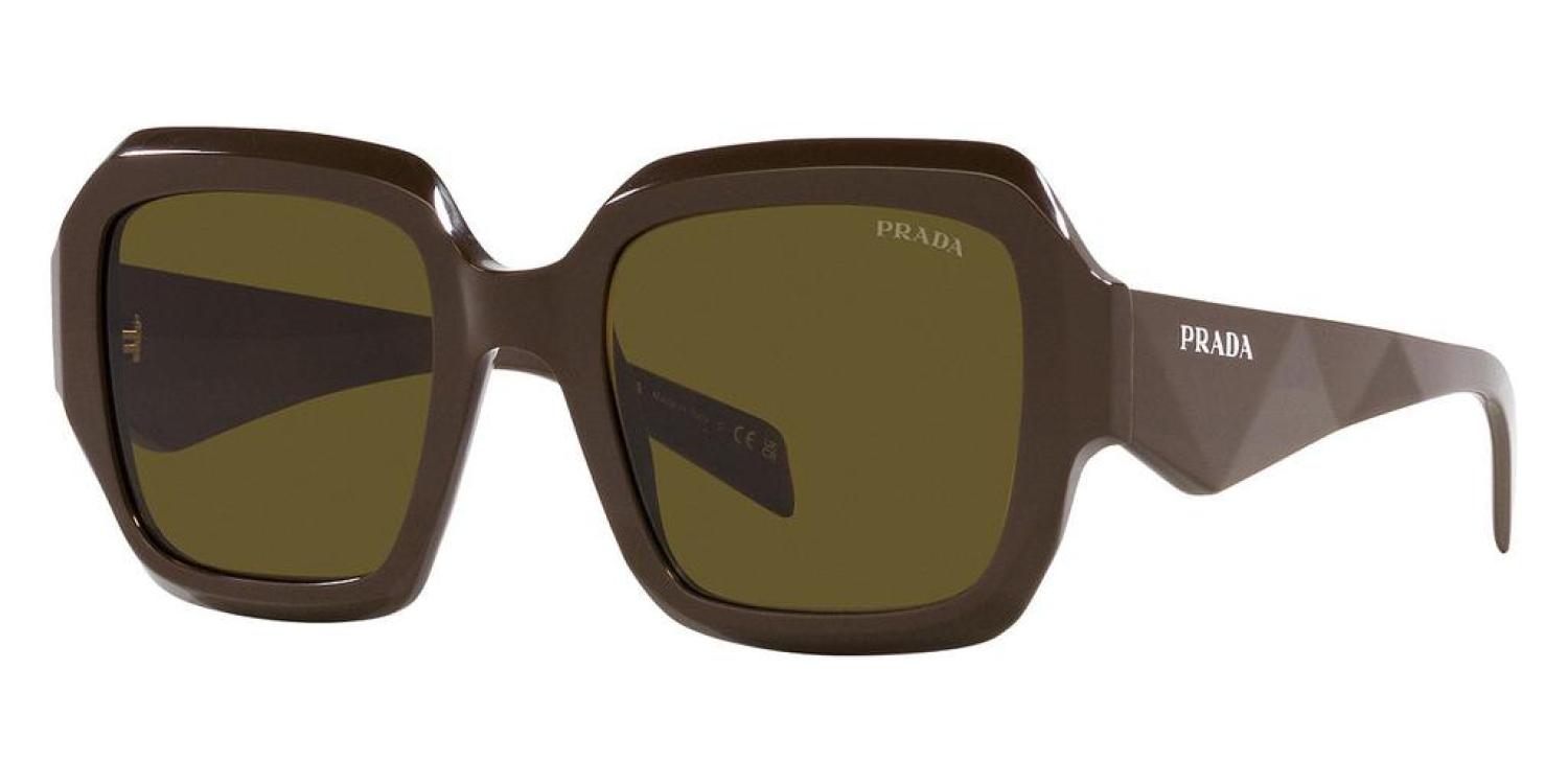 Prada Women's Sunglasses. Dimensions - 54 mm x 20 mm x 145 mm. Loden Pillow Acetate frame, Dark Brown lenses. 100% UV Protection, Non-Polarized. Made in Italy (PR-28ZSF-15L09Z-54)