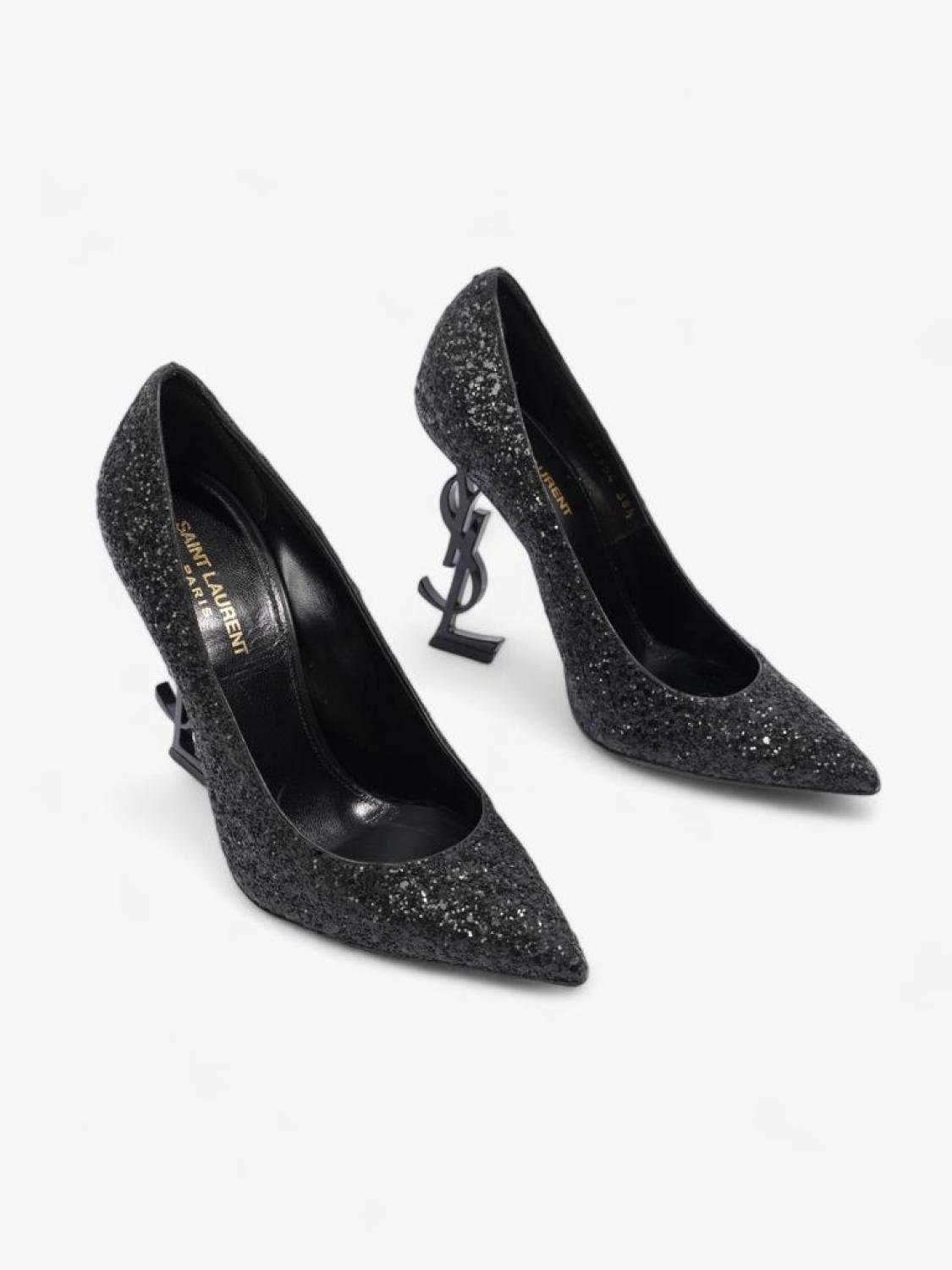 Brand - Saint LaurentStyle - Opyum GlitterSize - EU 38.5 UK 5.5Condition - Very GoodColour - BlackMaterial - GlitterComes With - Original Box and Dustbag