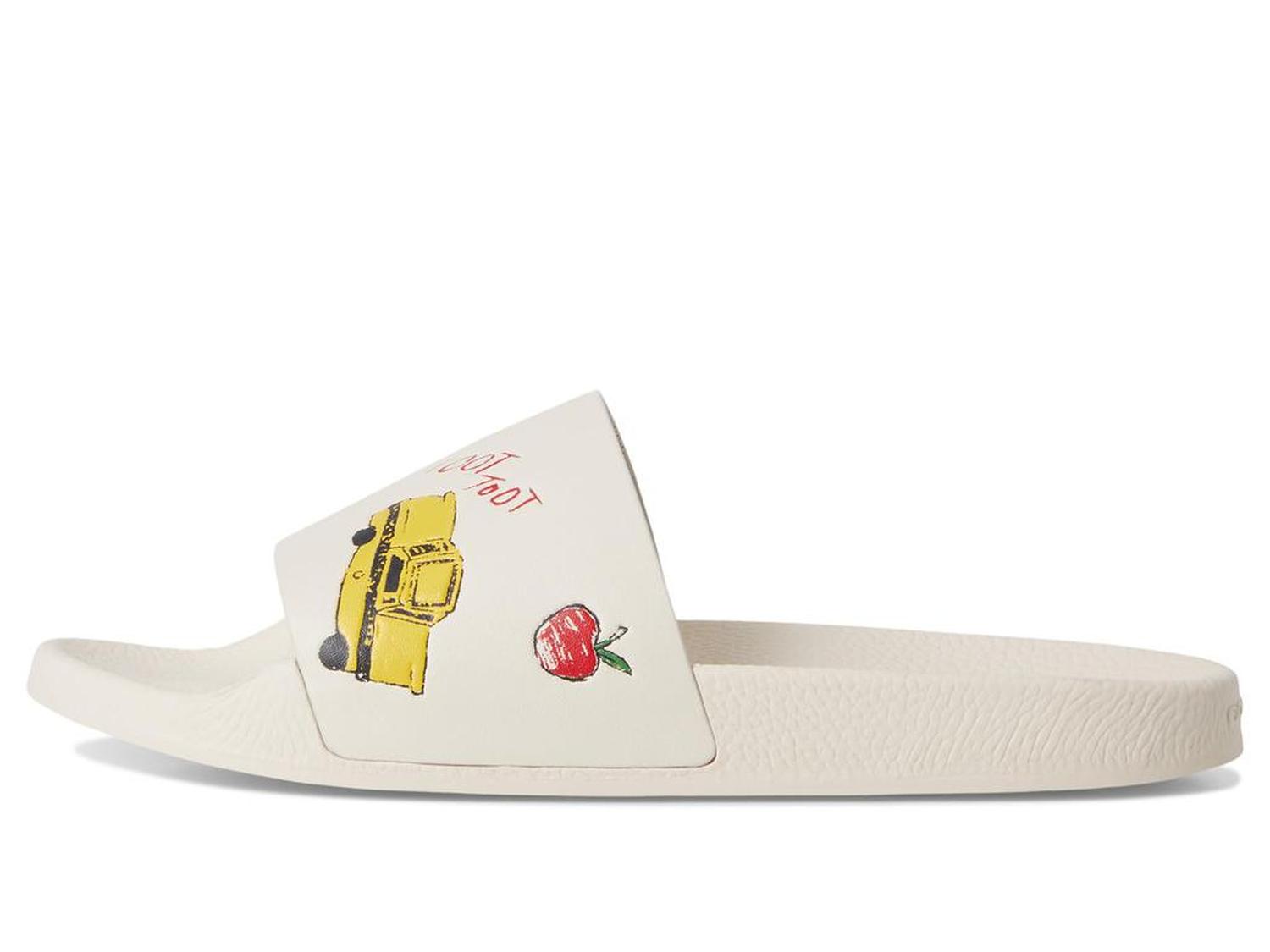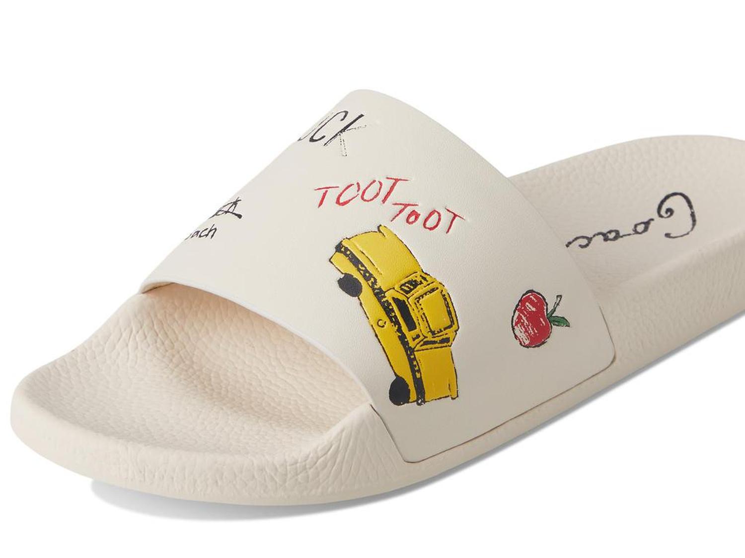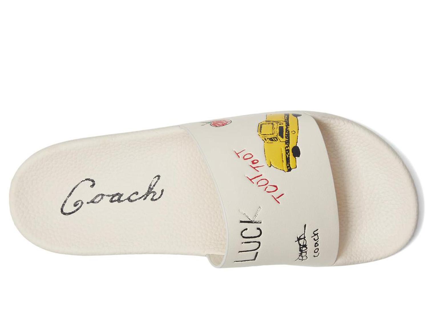 Please Note: COACH™ items cannot be shipped to military addresses (APO or FPO) and addresses in Hawaii, the Virgin Islands, Guam or any other locations outside of the continental US. Step into laid-back luxury wearing the COACH® Udele Sport Slide with Sketch Print sandals. This slip-on footwear features leather upper construction and contoured EVA footbed for long-lasting wear. Synthetic rubber lining. Allover print pattern. Low-top profile. Open, round toe silhouette. Rubber outsole. Imported.
