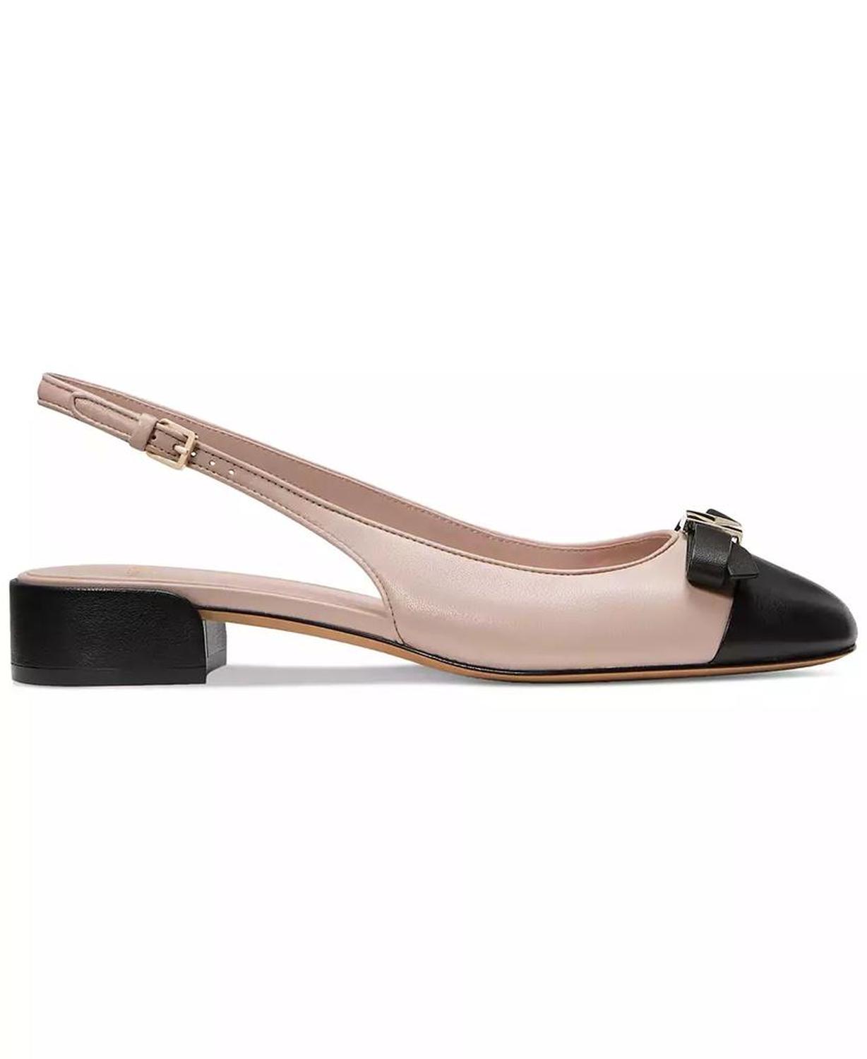 Make every step stylish with these kate spade new york pumps, featuring a front bow detail and an elegant almond toe. The slingback closure ensures a secure and comfortable fit. Heel height: 0.98" Toe shape: almond toe Closure: slingback Upper, lining & trim: leather Imported