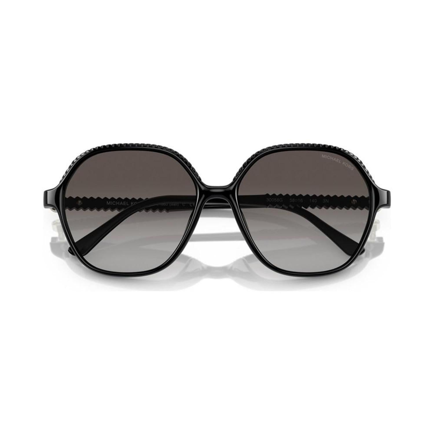 • Oversized, irregular shape featuring woven texture detail on the temples. Sophisticated MK Circle Charm logo compliments the temples. Narrow temples with woven texture detail inspired by MK handbag straps.