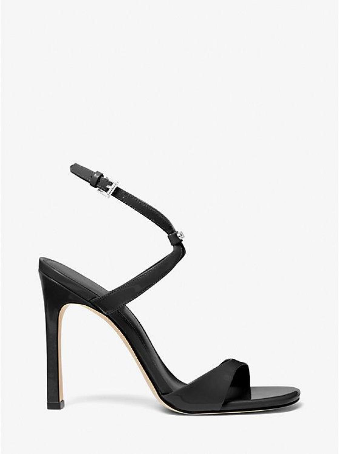 • A moment for the Amara. This leg-lengthening, patent leather sandal is the ultimate It-girl shoe. Designed with wraparound straps that meet in the center, it’s punctuated with a subtle logo charm for added dimension.