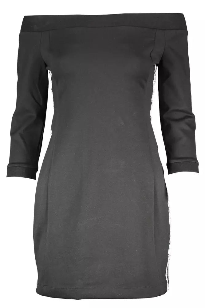Command attention in this stunning Calvin Klein short dress, featuring a seductive neckline that drapes gracefully off the shoulders and modern 3/4 sleeves. Accented with bold, contrasting details and the iconic Calvin Klein logo, this chic black dress is a testament to timeless style with a cutting-edge twist. Crafted with a luxurious blend of polyester, viscose, and elastane, this piece promises a comfortable fit while making an unapologetically trendy statement at any event.