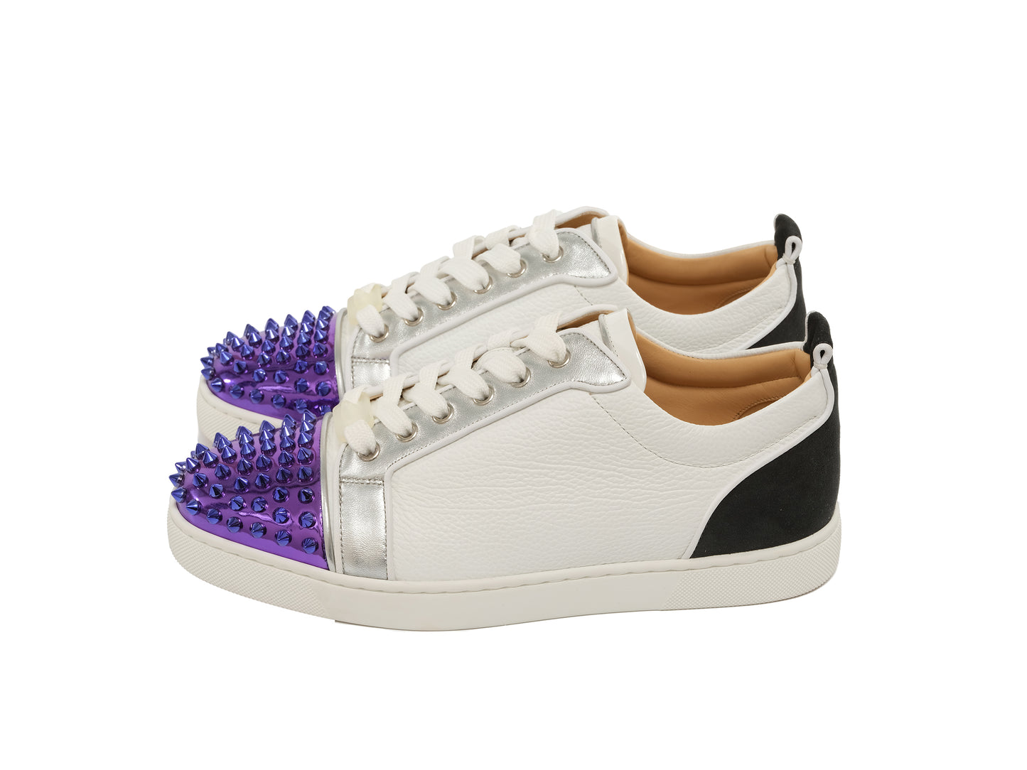The Louis Junior Spikes is an iconic sneaker inspired by tennis shoes from the 1980s. With its pure clean lines, this classic low-top is crafted with contrasting leather features, brand specific red soles and a toe box that is embellished with signature spikes.