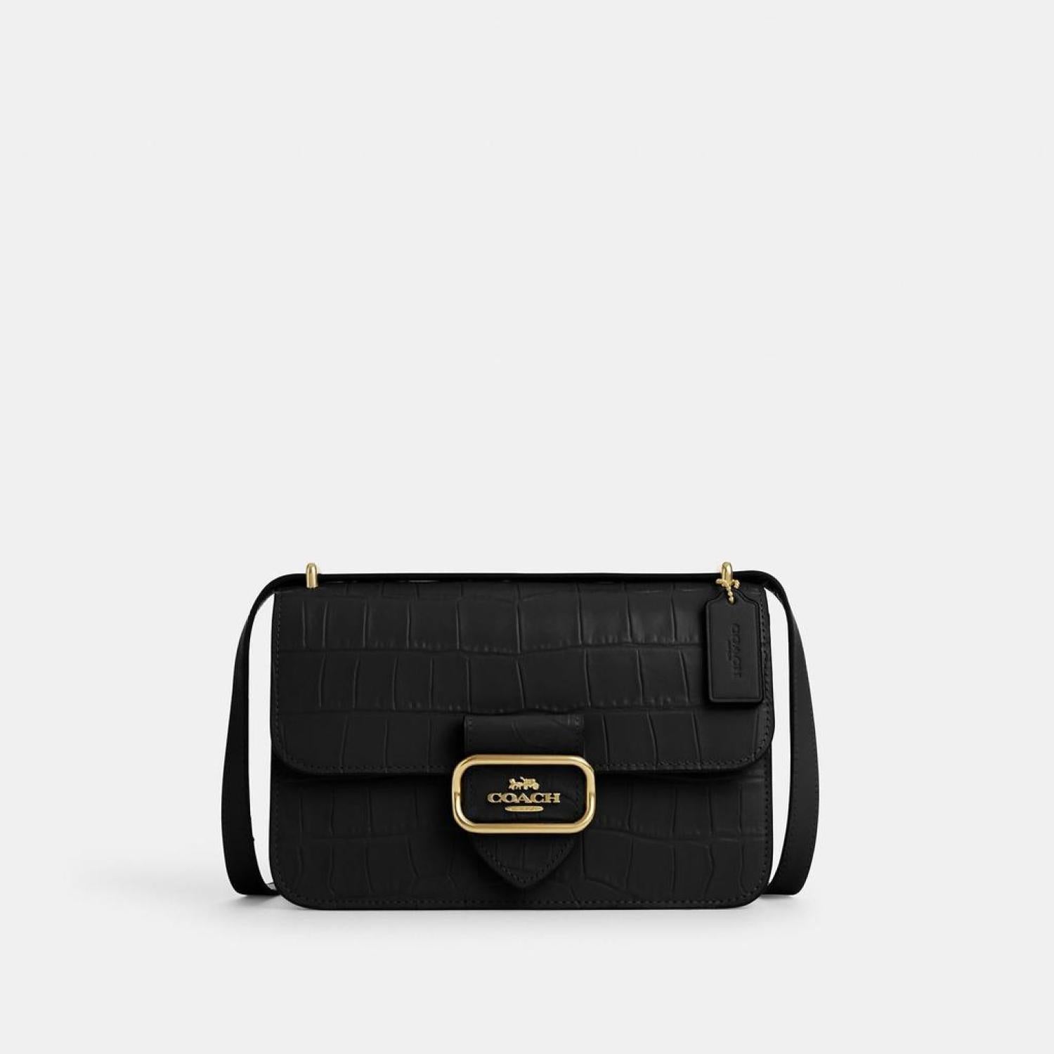 Crocodile-embossed leather and smooth leather Inside zip and multifunction pockets Snap closure fabric lining Adjustable strap with 21 1/2 drop for shoulder or crossbody wear Outside open pocket 9 3/4 (L) x 6 1/4 (H) x 3 (W) Style No. CM204 | Coach Outlet Large Morgan Square Crossbody - Black