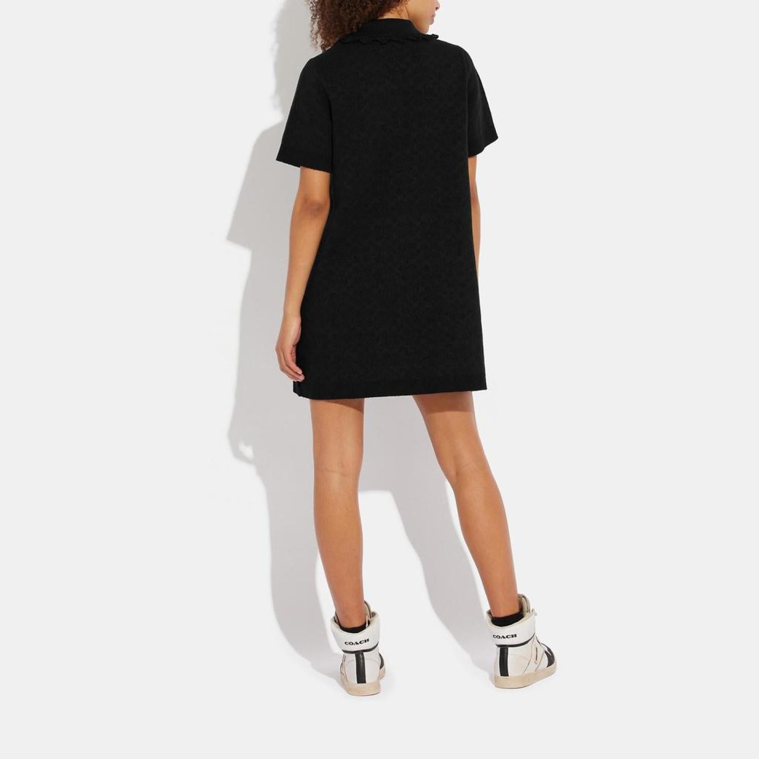 100% cotton Combo - 74% cotton 25% polyester 1% elastane Details - 75% viscose 25% polyester Button closure Slip pockets Length - 32 Machine wash Model is 5'10 (178cm) chest 31 (79cm) waist 24 (61cm) hips 35 (89cm) and wears a size S Style No. CI470 | Coach Outlet Signature Knit Dress - Black, Size - X-Small