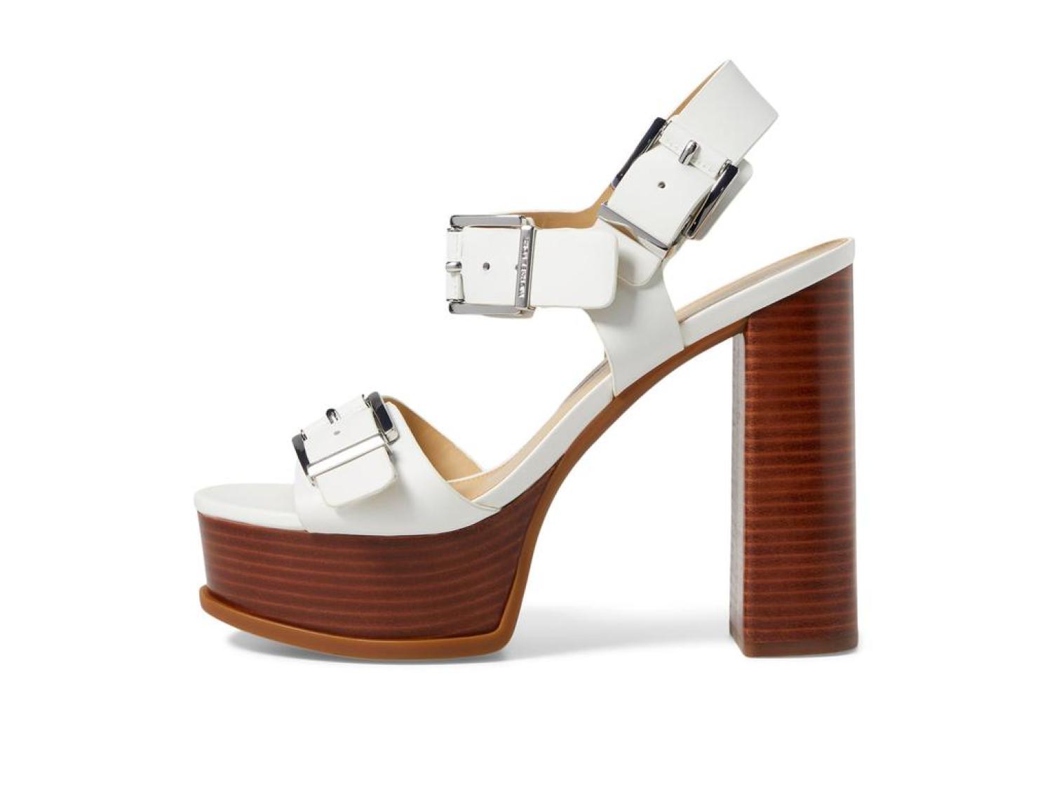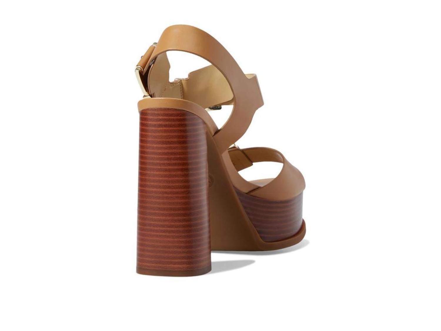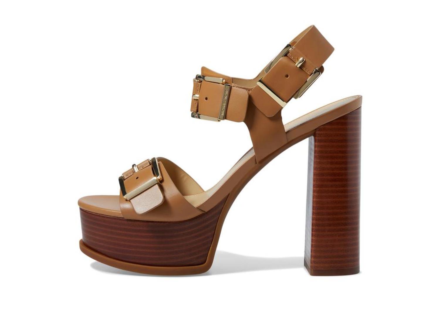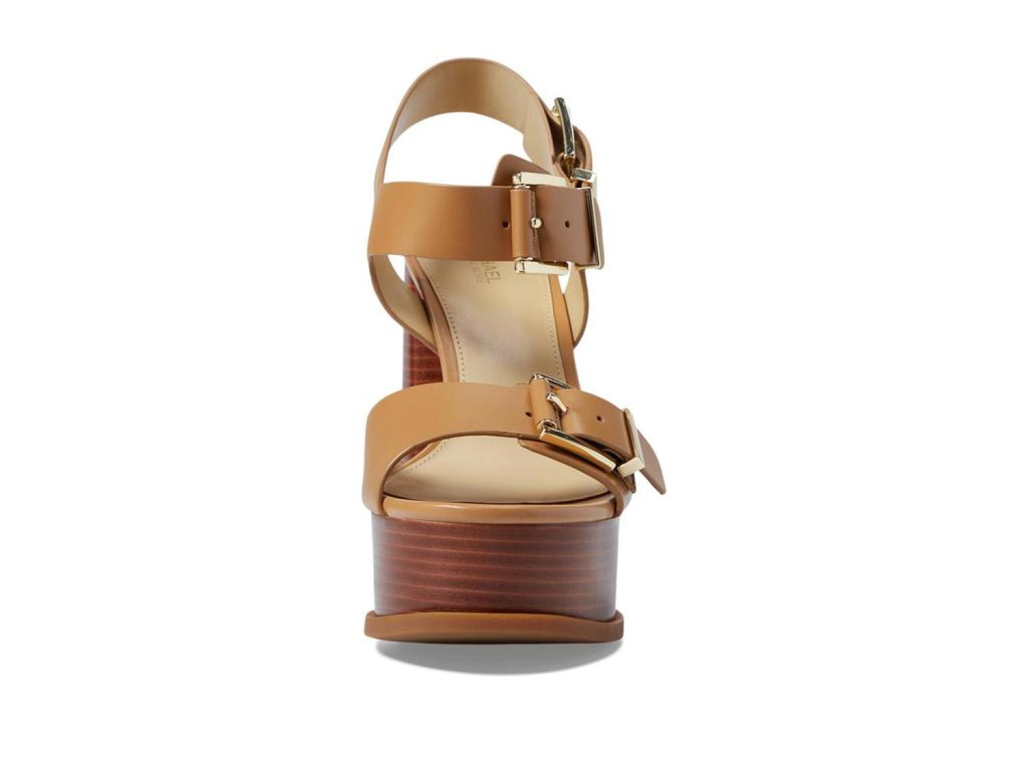 Be ready for a timeless, dandy look donning the MICHAEL Michael Kors® Colby Platform Sandal. These block-heeled sandals feature oversized buckle detailing on the straps for modish touch, open round toe design, and leather upper. Leather lining. Lightly padded synthetic outsole. Adjustable ankle strap buckle closure. Brand detailing on the footbed. Rubber outsole. Imported. Product measurements were taken using size 7, width M. Please note that measurements may vary by size. Measurements: Heel Height: 5 in Weight: 9.52 oz