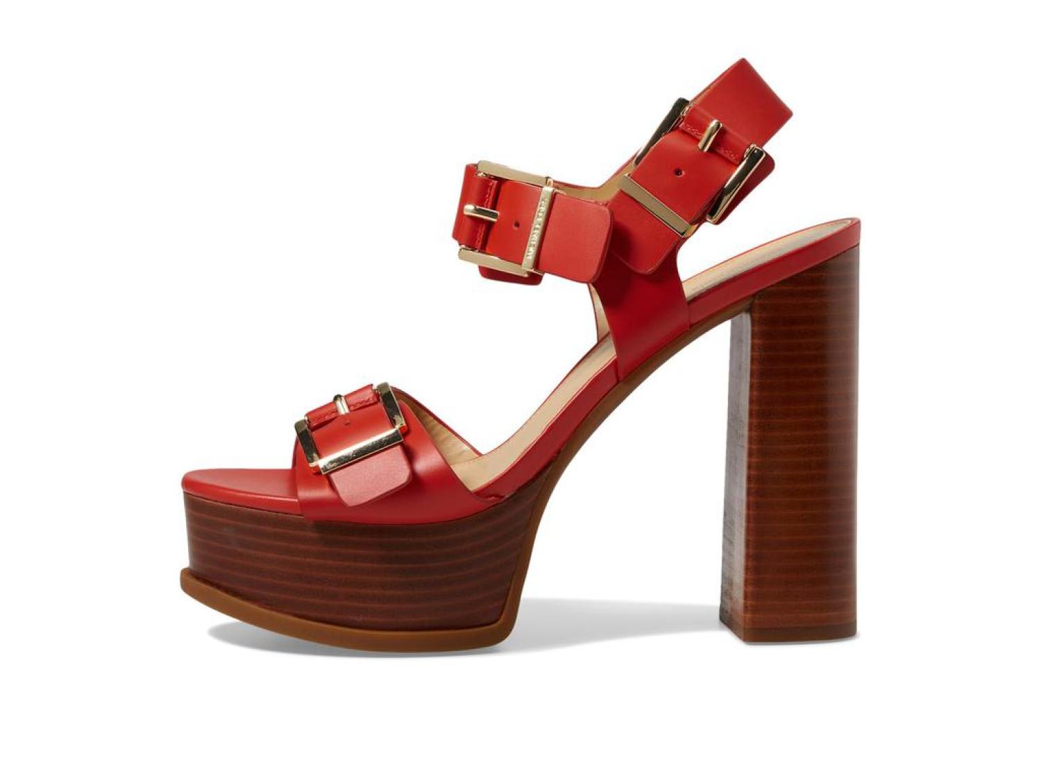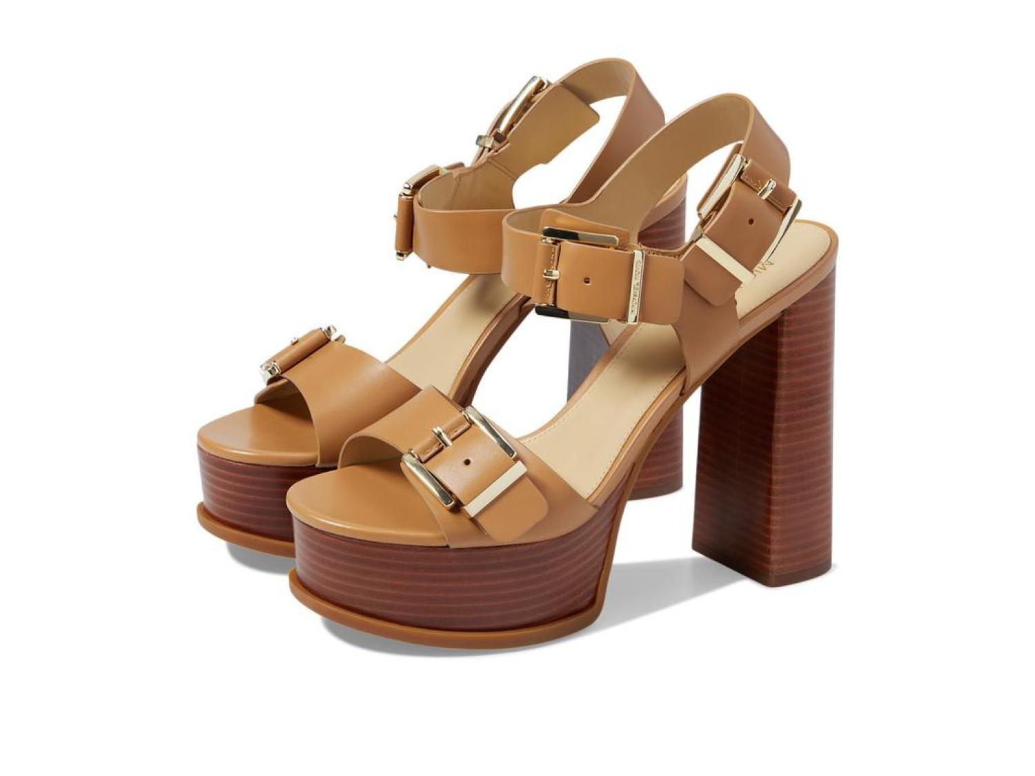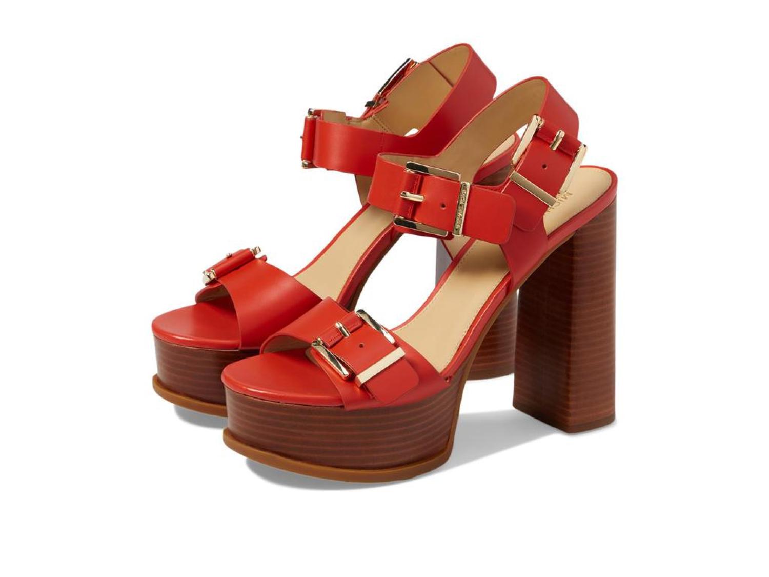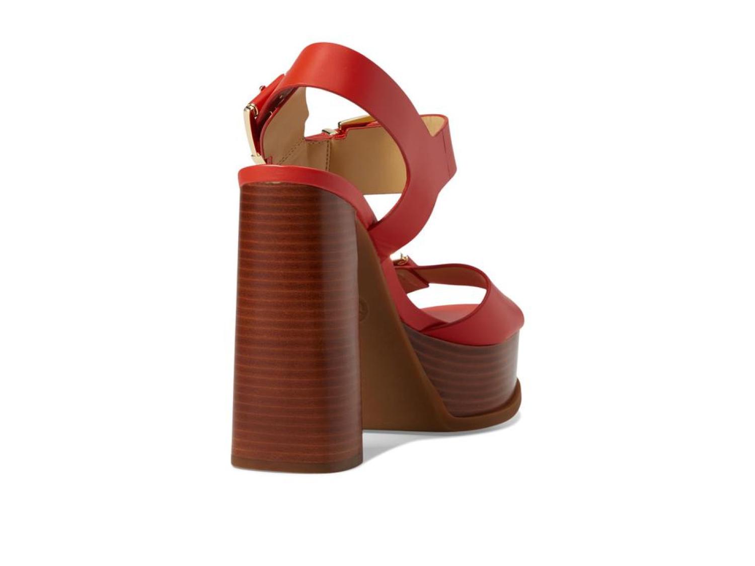 Be ready for a timeless, dandy look donning the MICHAEL Michael Kors® Colby Platform Sandal. These block-heeled sandals feature oversized buckle detailing on the straps for modish touch, open round toe design, and leather upper. Leather lining. Lightly padded synthetic outsole. Adjustable ankle strap buckle closure. Brand detailing on the footbed. Rubber outsole. Imported. Product measurements were taken using size 7, width M. Please note that measurements may vary by size. Measurements: Heel Height: 5 in Weight: 9.52 oz