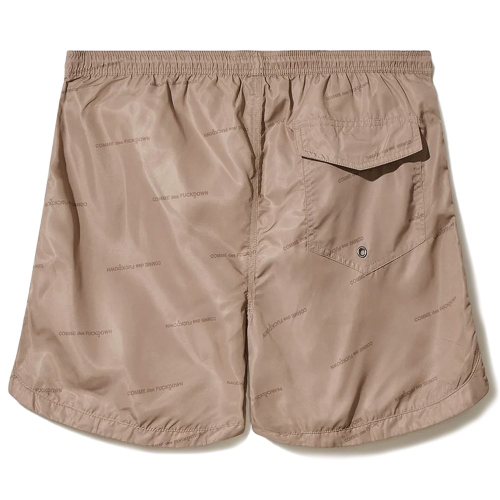 Comme des Fuckdown men’s Bermuda shorts with drawstring waist, two side pockets and one back pocket, all-over logo print