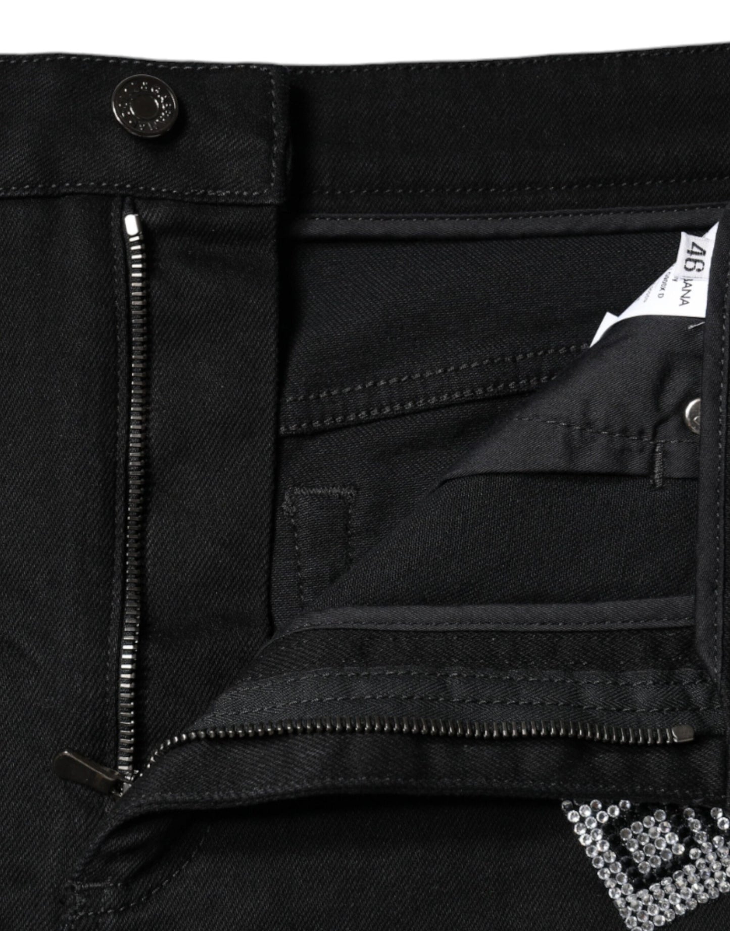 Dolce & Gabbana Black Cotton Stretch Strass Hot Pants Shorts
