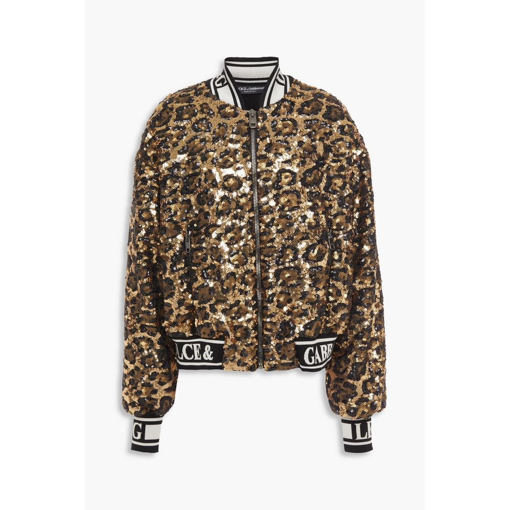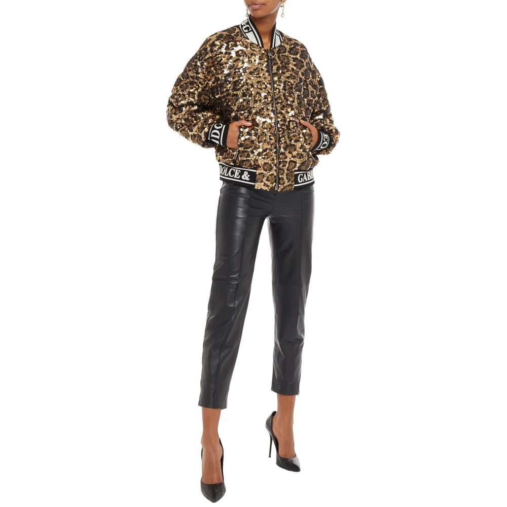 • Dolce & Gabbana zipper sweatshirt studded with spotted sequins, contrasting elastic bands with brand logo. Made in Italy.