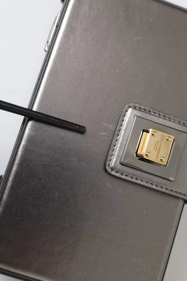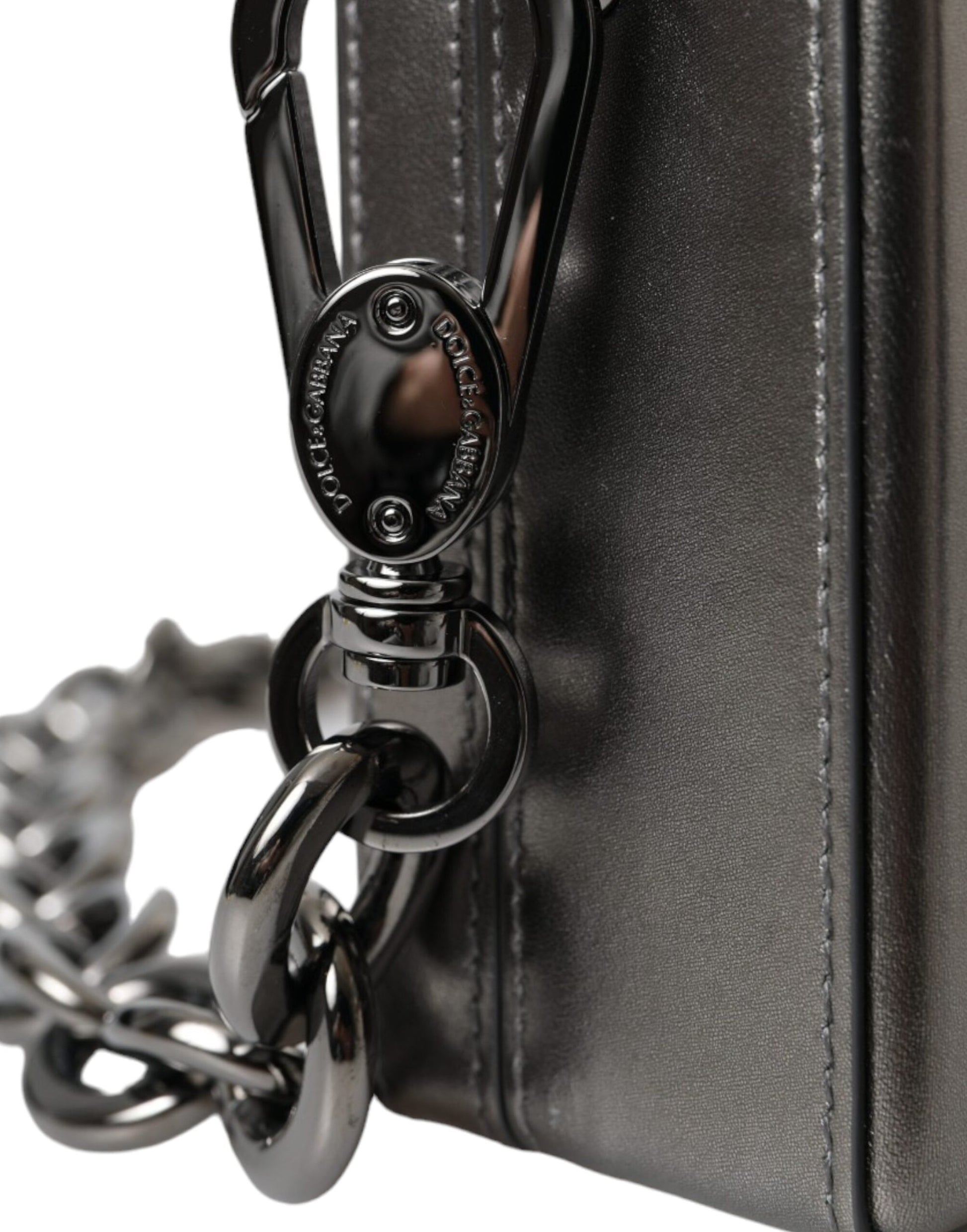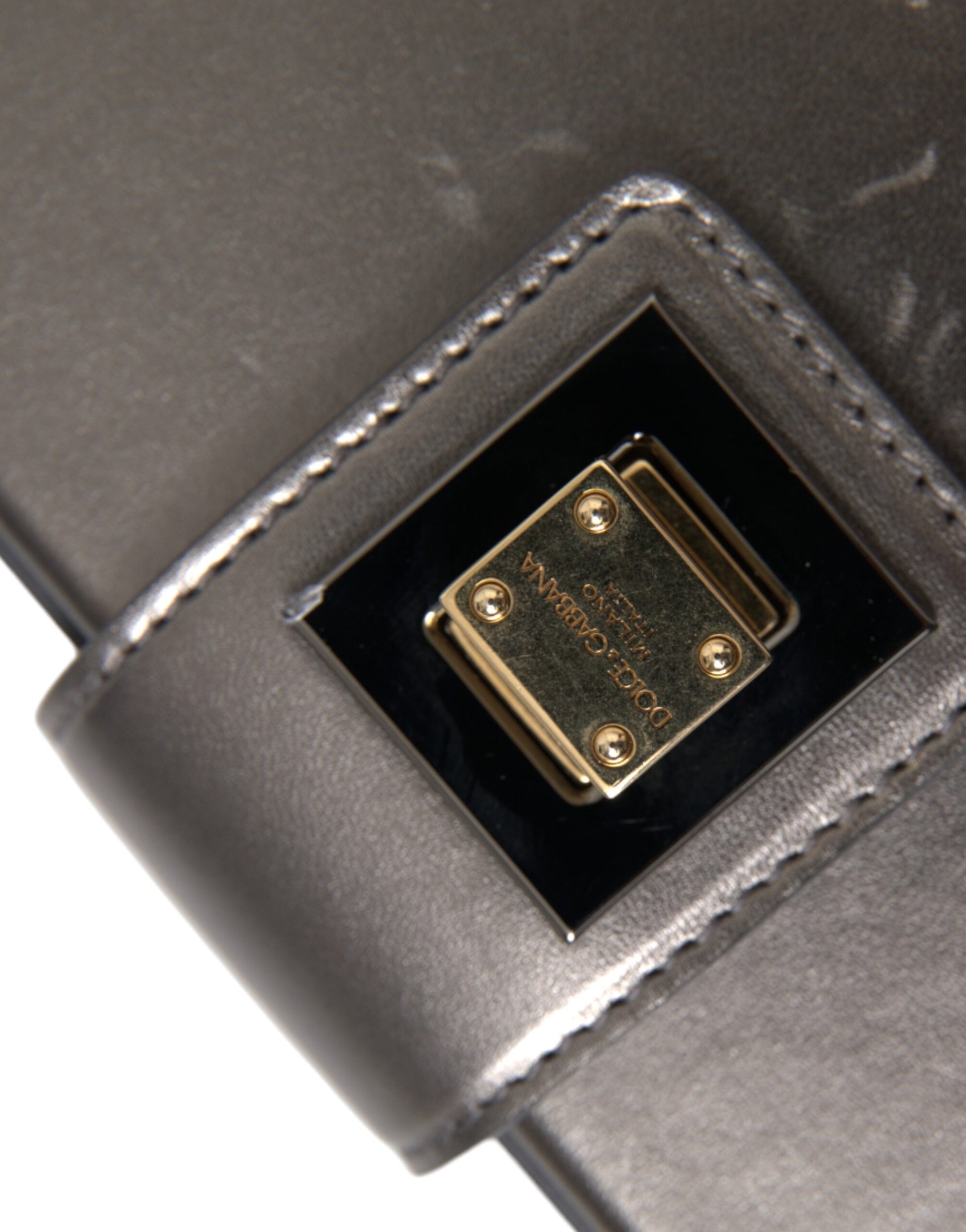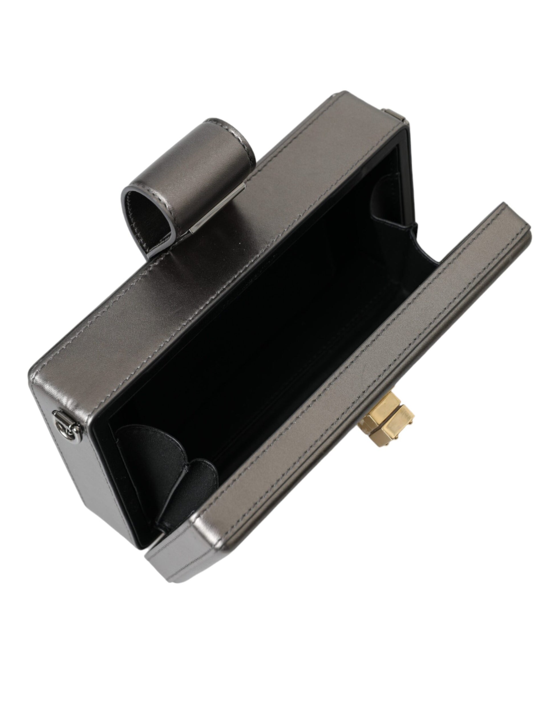Dolce & Gabbana Metallic Gray Calfskin Leather DG BOX Shoulder Bag