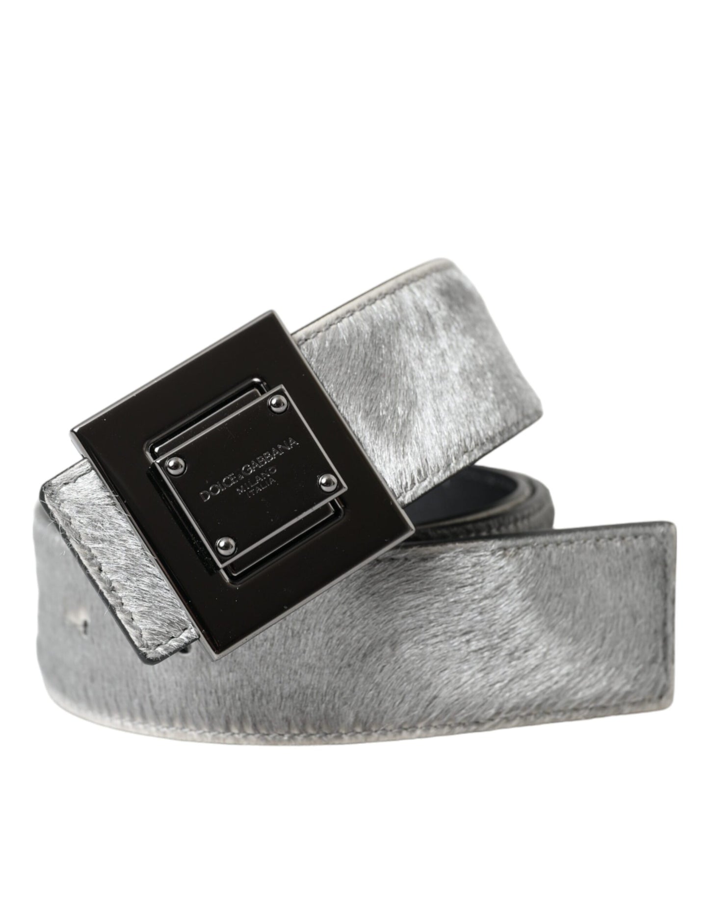 Dolce & Gabbana Silver Leather Square Metal Buckle Belt