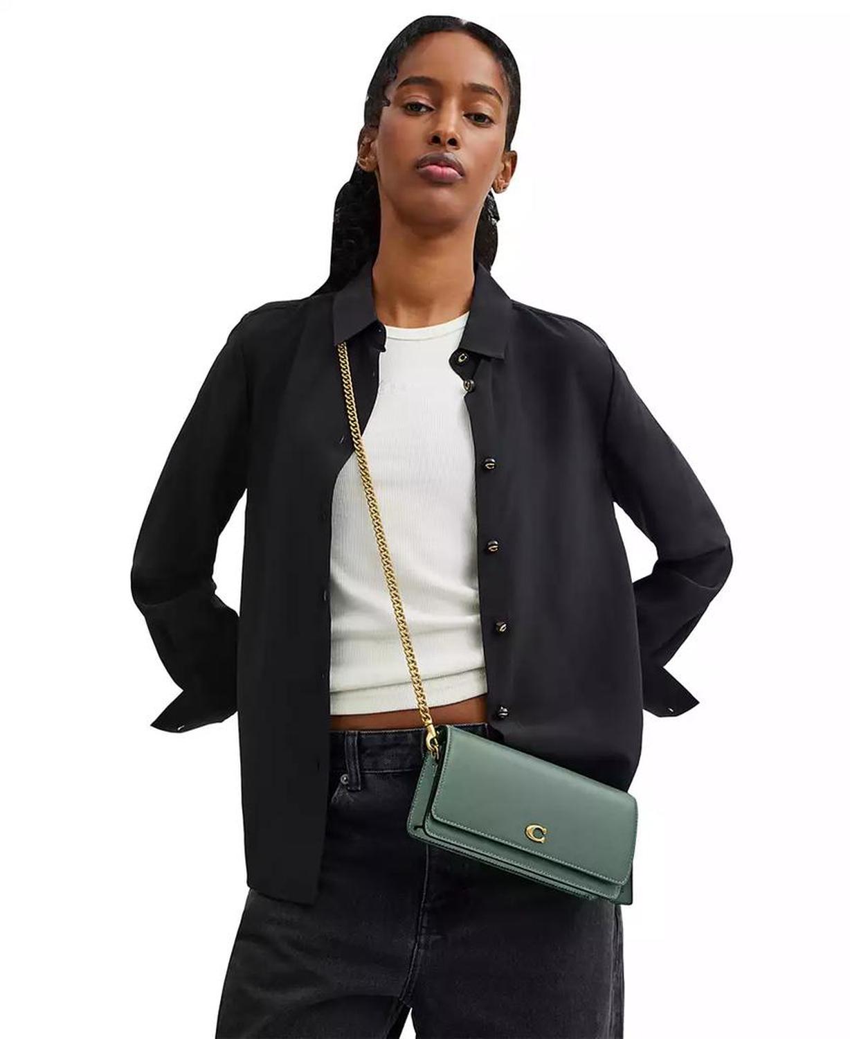 • A chic and versatile accessory, this wallet by Coach is crafted in leather and can be worn as a crossbody thanks to the removable chain strap.
