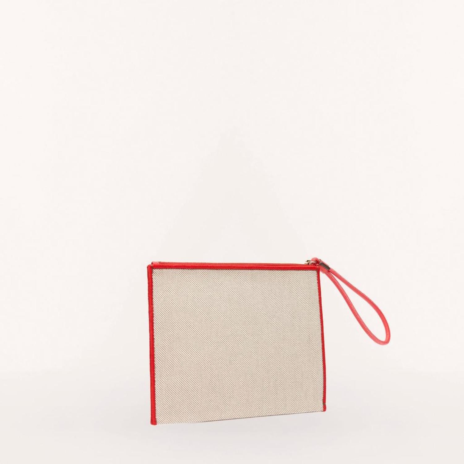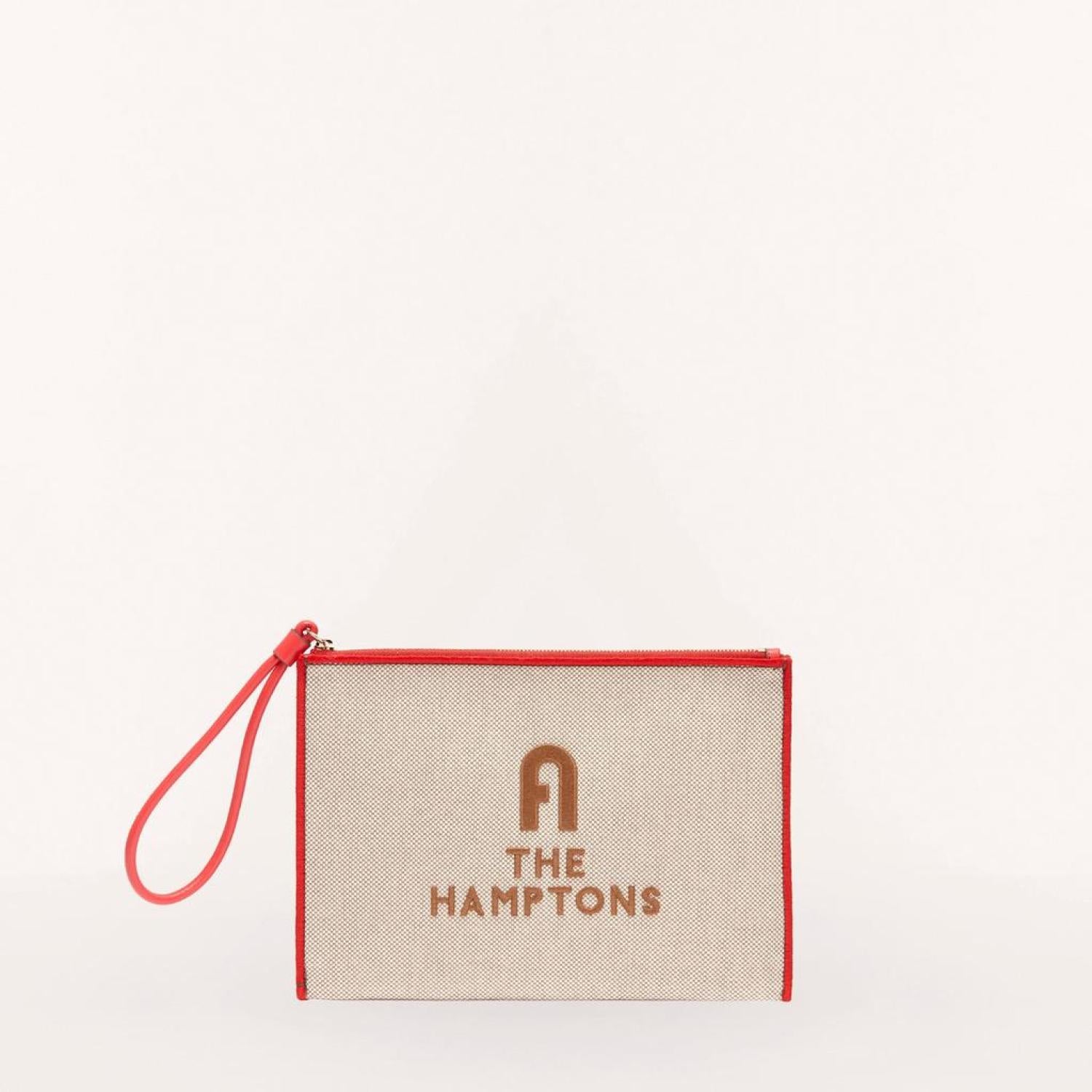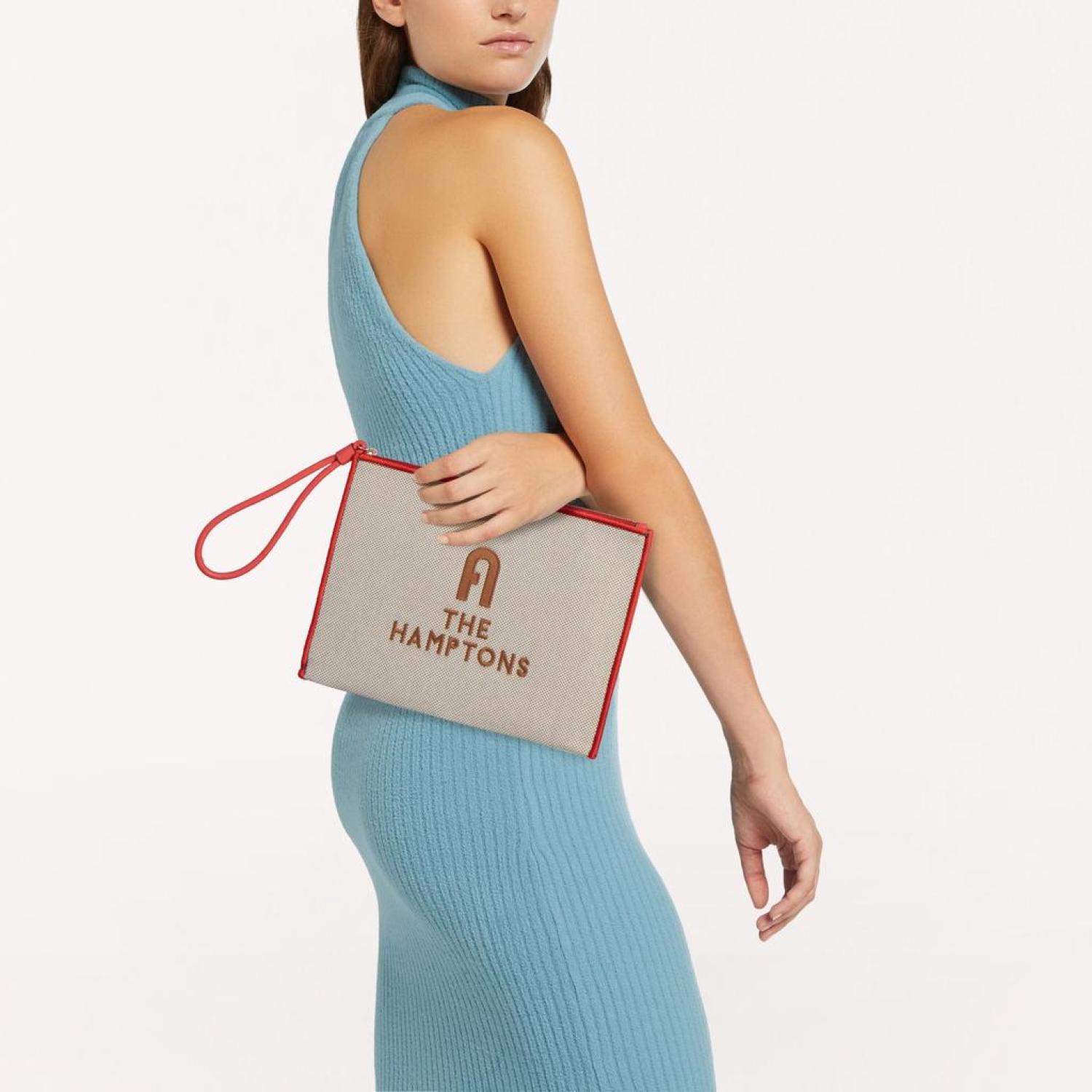 Furla Archive is an envelope bag made of canvas fabric. The large accessory allows you to always keep your small items, cosmetics and personal belongings at hand. The elegant "The Hamptons" print on the front completes the accessory. - Zipped closure- Open pocket inside- Fixed leather strap- Galvanised light gold finishes