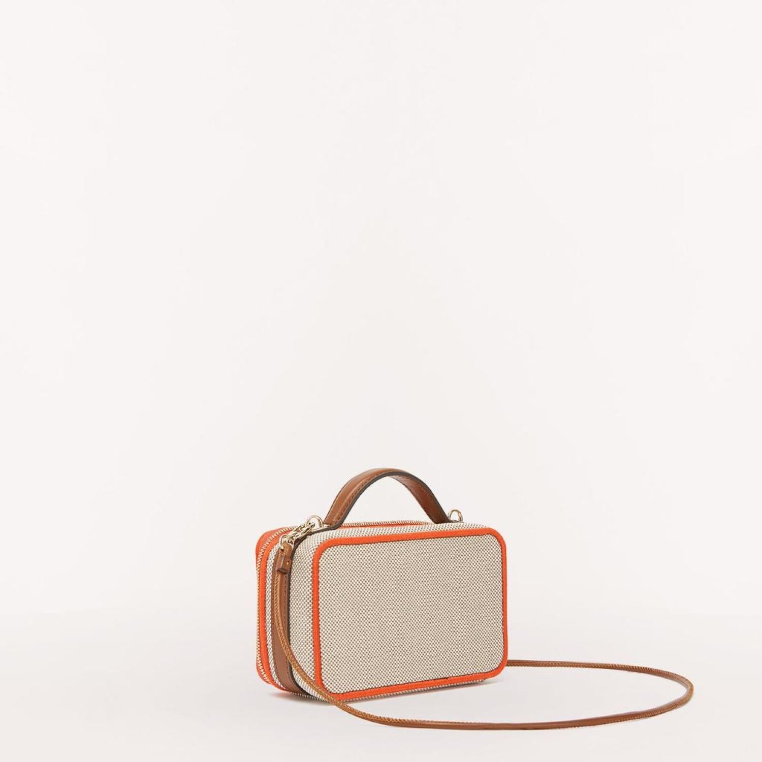 Furla Archive is a mini crossbody bag made of canvas fabric. Featuring a fixed metal chain shoulder strap, the model is finished with an elegant "The Hamptons" print and a mini Furla logo punched on the front. An elegant and chic accessory in which you can store small items and personal belongings. - Zipped closure- Leather top handle- Three lined inner compartments for credit cards and IDs- Galvanised light gold finishes Dimensions 6.5 x 3.94 x 2.17 (w x h x d)
