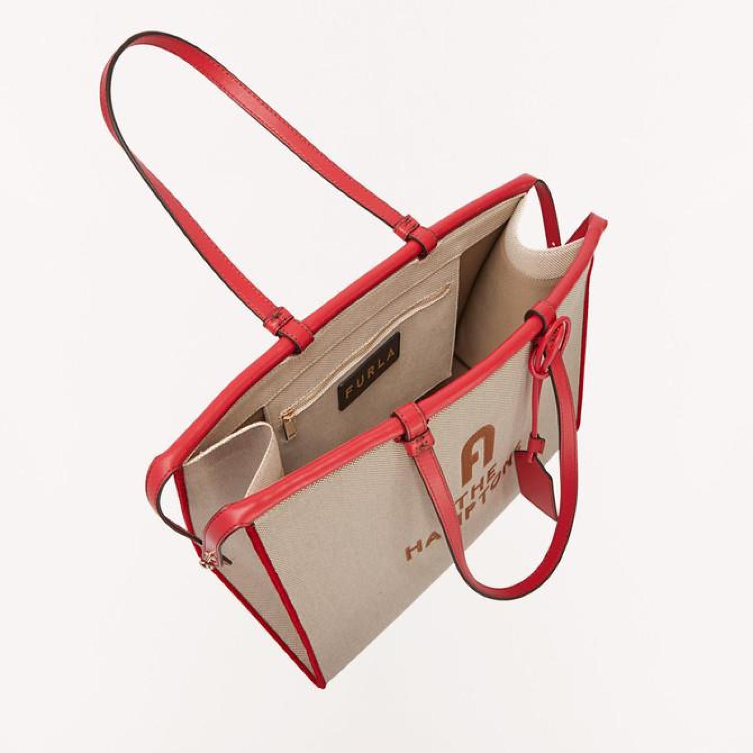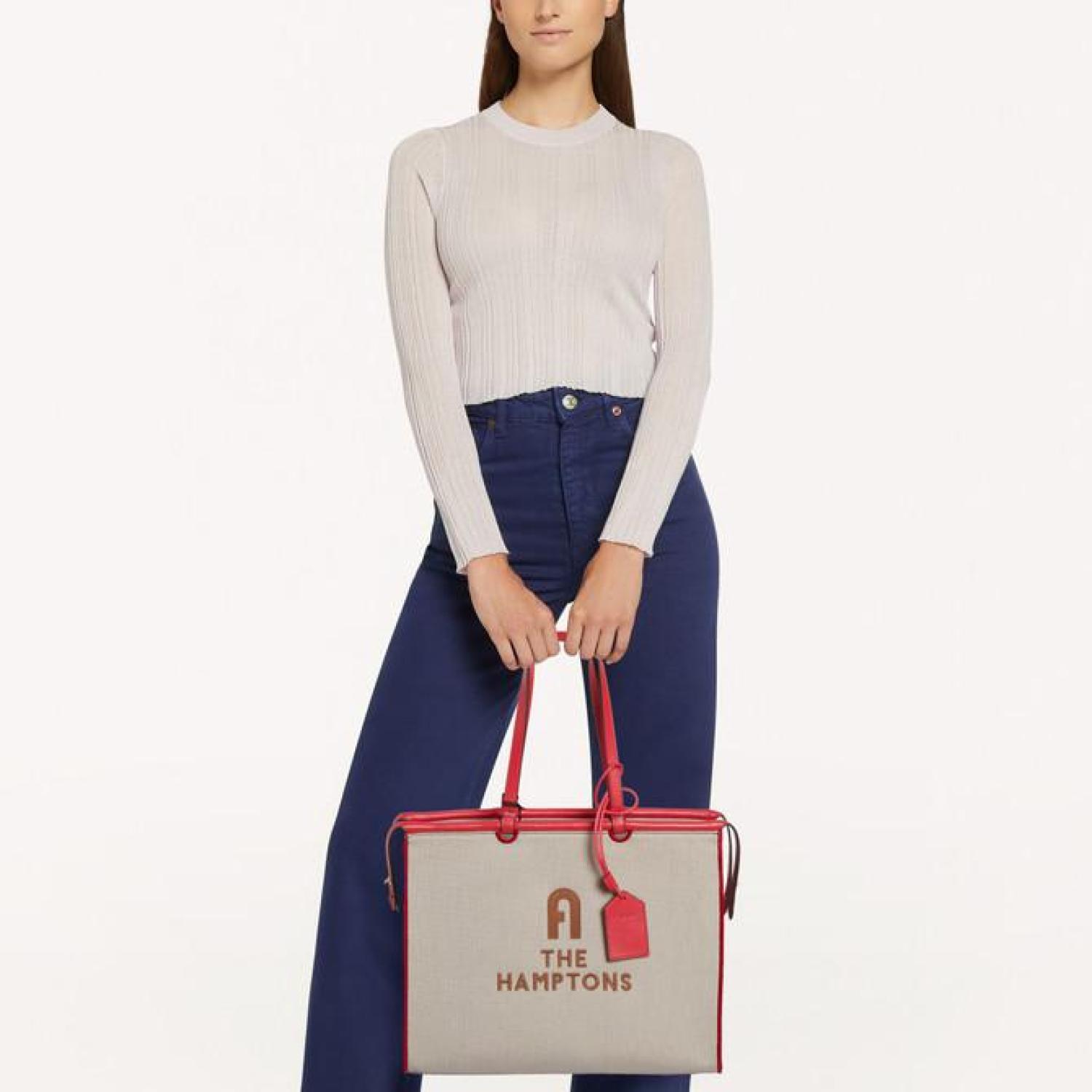 • Furla Archive is a large handbag made of canvas fabric. The double-handle model features leather details, and is made unique and distinctive by the "The Hamptons" embroidery on the front. A lightweight and elegant accessory in which you can store all your personal belongings.