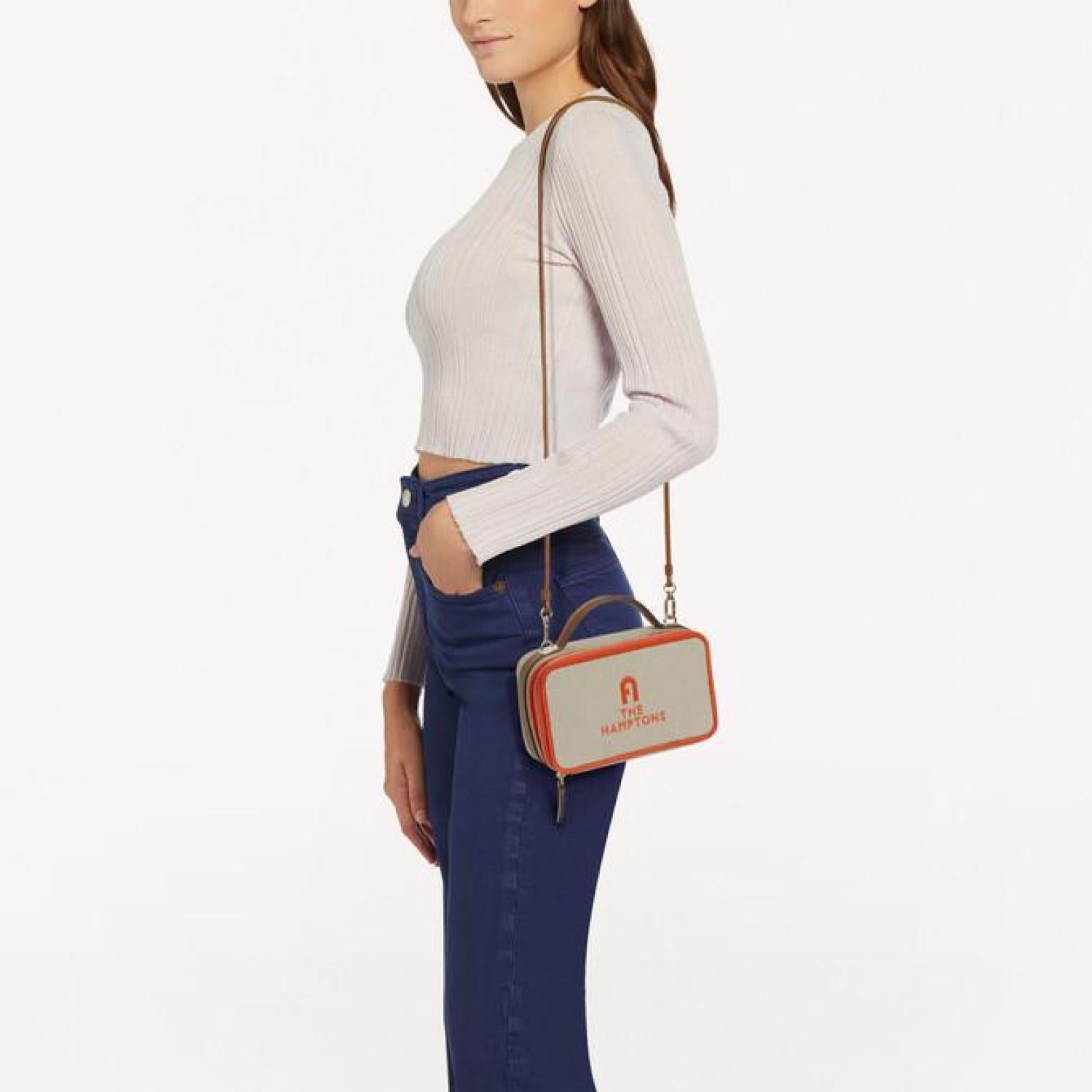 • Furla Archive is a mini crossbody bag made of canvas fabric. Featuring a fixed metal chain shoulder strap, the model is finished with an elegant "The Hamptons" print and a mini Furla logo punched on the front. An elegant and chic accessory in which you can store small items and personal belongings.