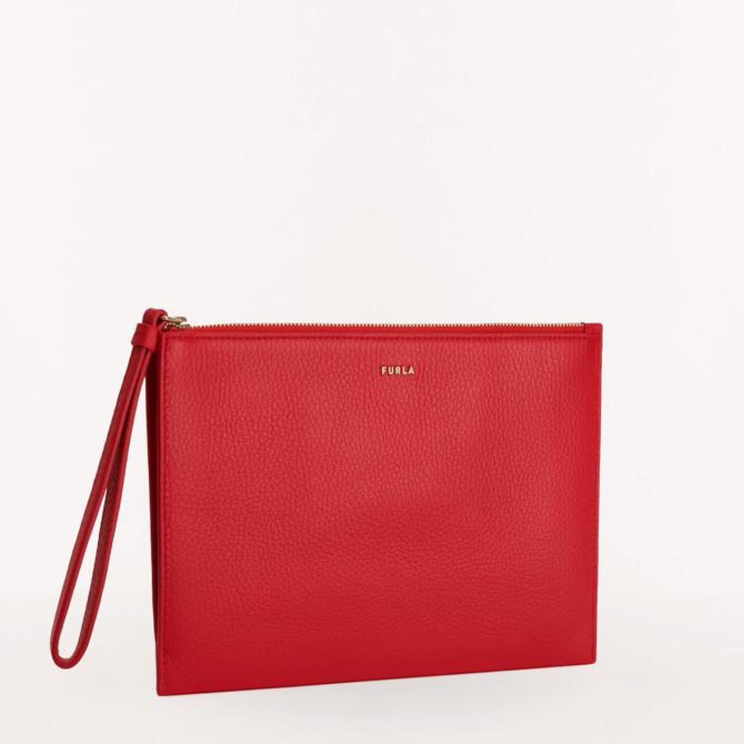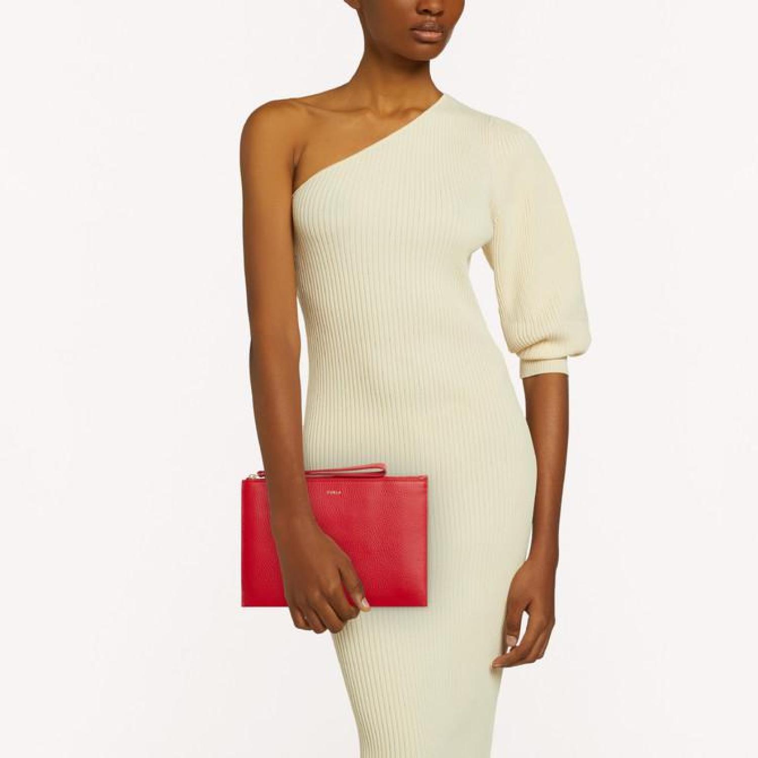 Furla Babylon is an envelope bag made of grained calfskin. The bag is equipped with a side strap so it can be worn on the wrist. The perfect bag for any occasion to keep your personal belongings at hand. - Zipped closure - Three inner credit card and ID card slots - Inside lined pocket - Mini Furla logo punched on the front Dimensions 9.65 x 6.69 (w x h) material Grained Calf Leather composition 100% Leather Plating Gold Height 6.69 in product code EAX0UNO_HSF000_1007_RUB00
