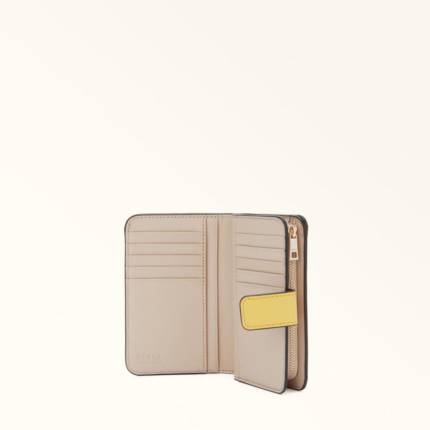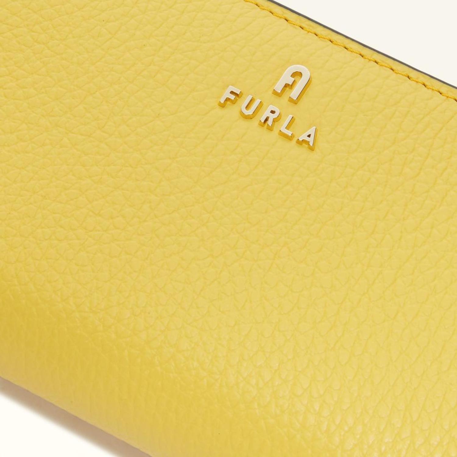 • The minimalist design of this Furla Camelia compact wallet makes it the ideal choice to keep in every bag. The inside is designed especially to hold banknotes, cards and ID, and it is crafted from soft grained leather, featuring rounded corners and elegant lines.