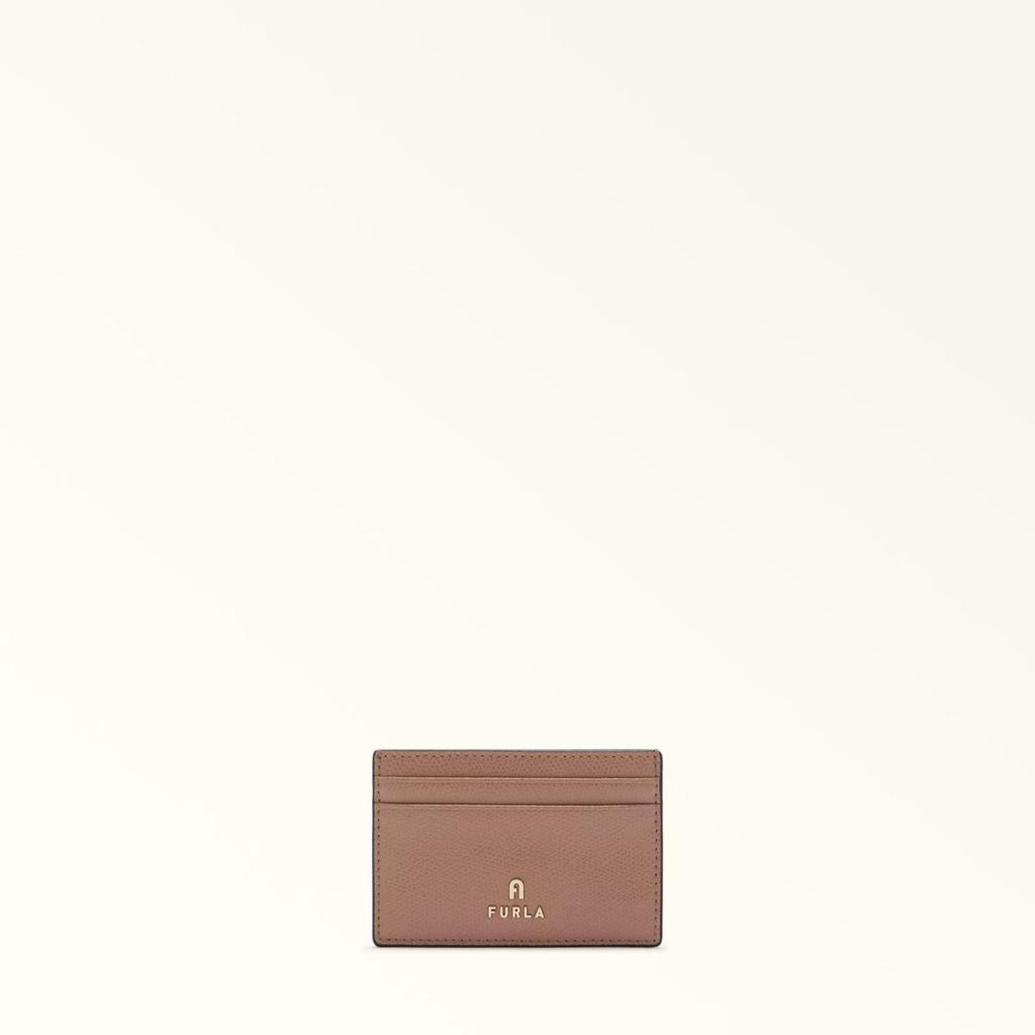• This Furla Camelia card holder combines functionality with elegant and sophisticated design. Styled in luxurious printed leather with a grained finish, it boasts card slots on the front and back as well as a central pocket, with sufficient space to keep all your cards and documents in order.