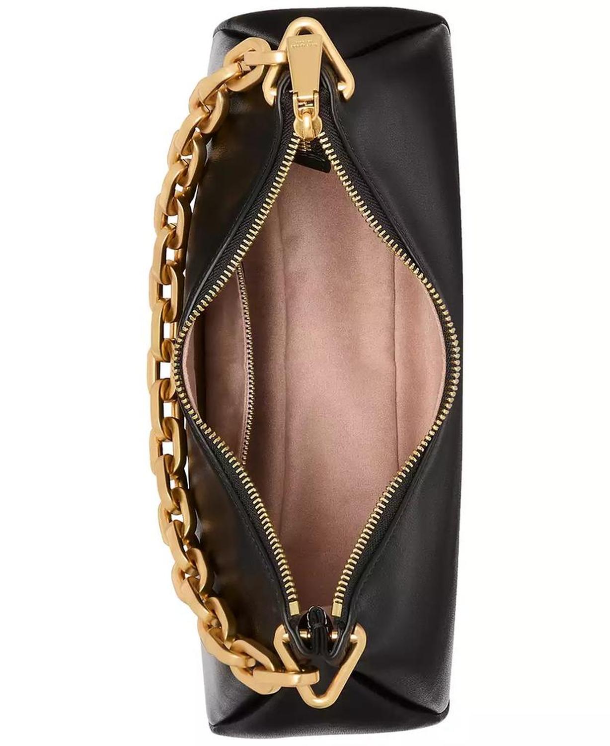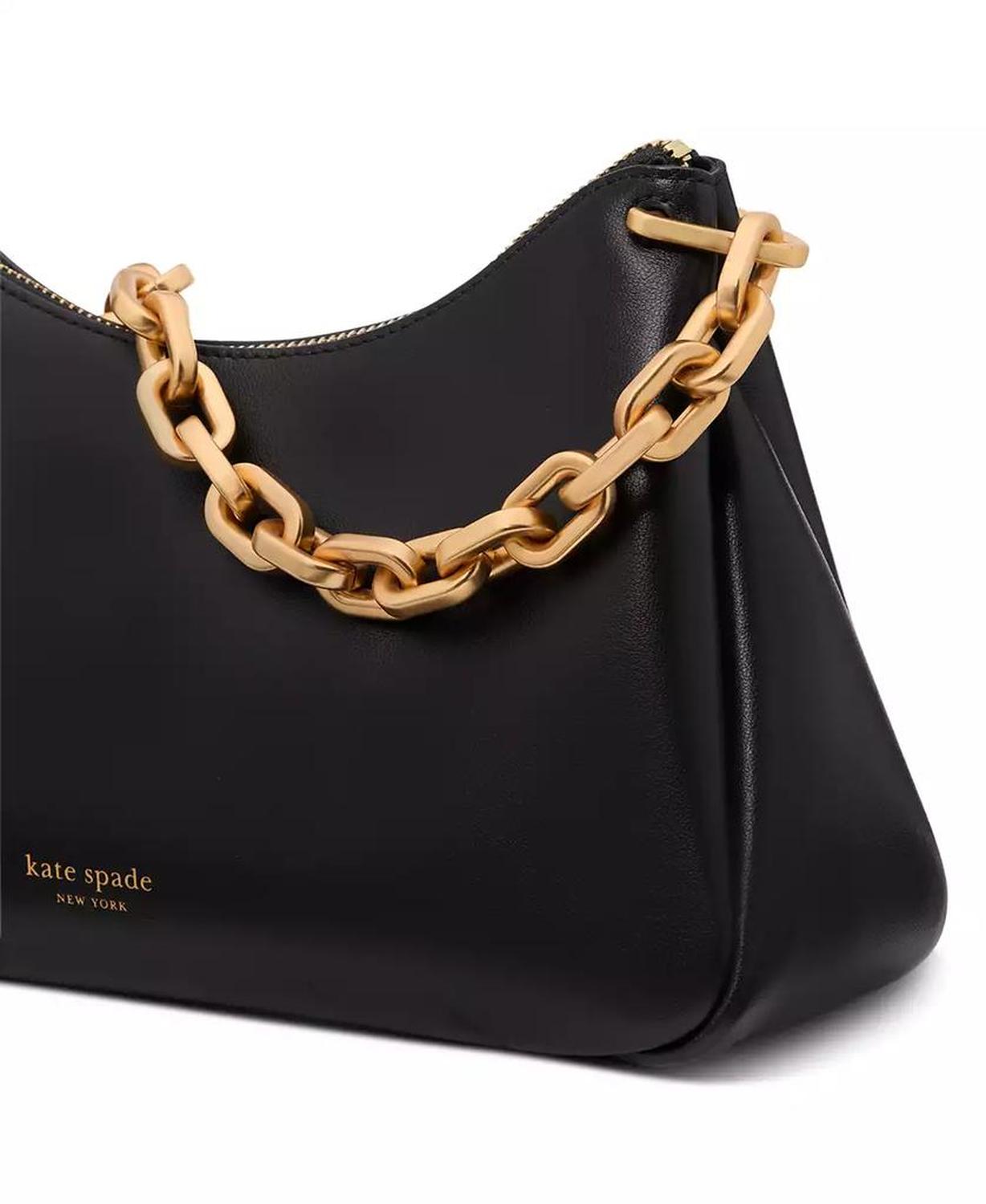 Defined by a bold chain handle, this leather shoulder bag by kate spade new york refines everyday style. Small-sized bag; 11-4/5"W x 7-3/10"H x 4-1/4"D (width is measured across the bottom of handbag) Silhouette is based off 5'9" model 8"L handle Zippered closure Gold-tone hardware, interior zip pocket Leather Spot clean Imported