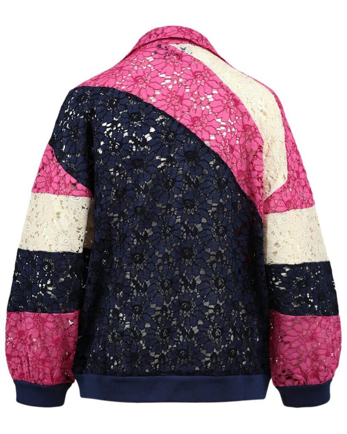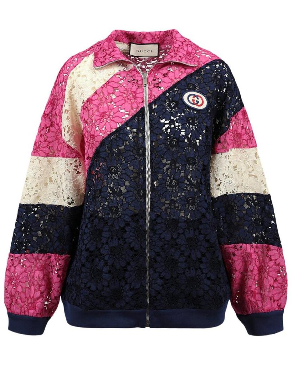 • The Gucci Lace & Intarsia Jacket is a coveted piece that reflects the brand's eclectic and luxurious aesthetic. Made in Italy, this jacket features ink multicolor lace and intarsia with a high-neck and long sleeves. The interlocking G patch on the front adds a touch of signature Gucci style. With a front zip fastening and made from a combination of viscose, cotton, and polyamide, this jacket is both comfortable and stylish. Please note that this product is dry clean only. At our website, we stand by the authenticity of all of our products, including this jacket.
