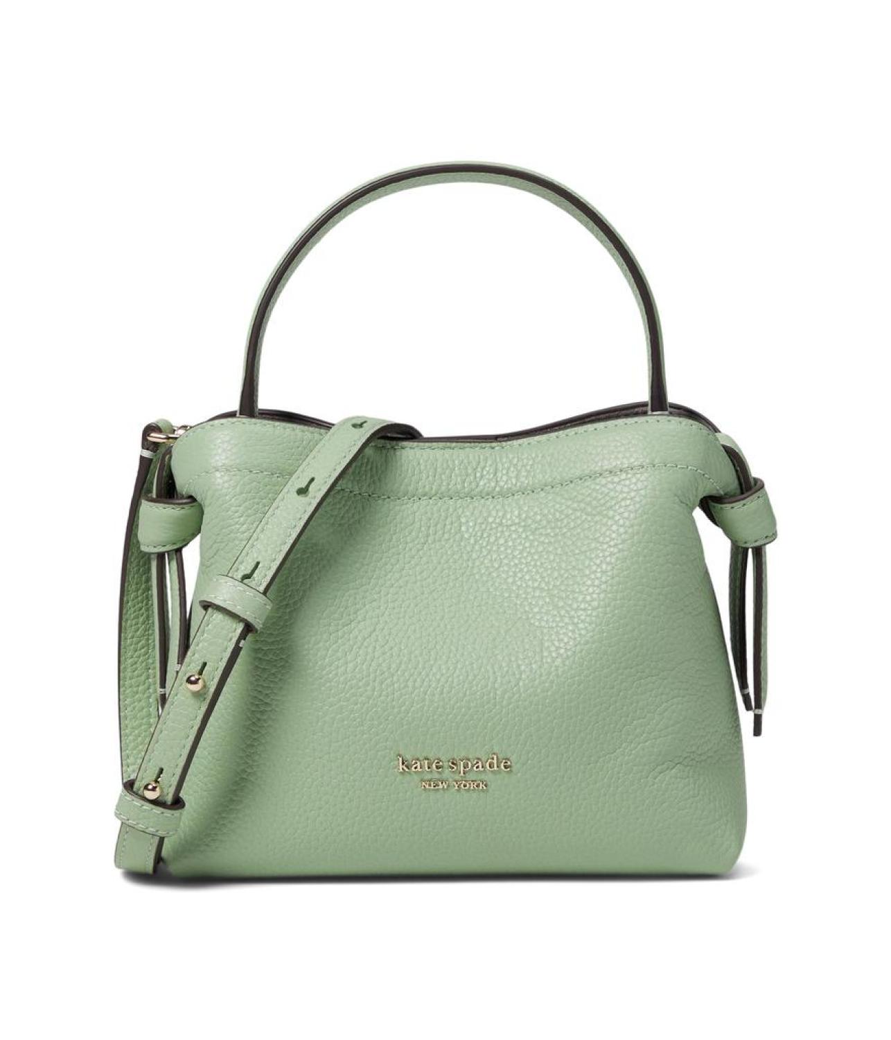 • Bring a whimsy touch to your ensembles by carrying the Kate Spade New York® Knott Pebbled Leather Mini Crossbody Tote. It features two main compartments with magnetic snap closure, adjustable crossbody strap, and a carry handle.