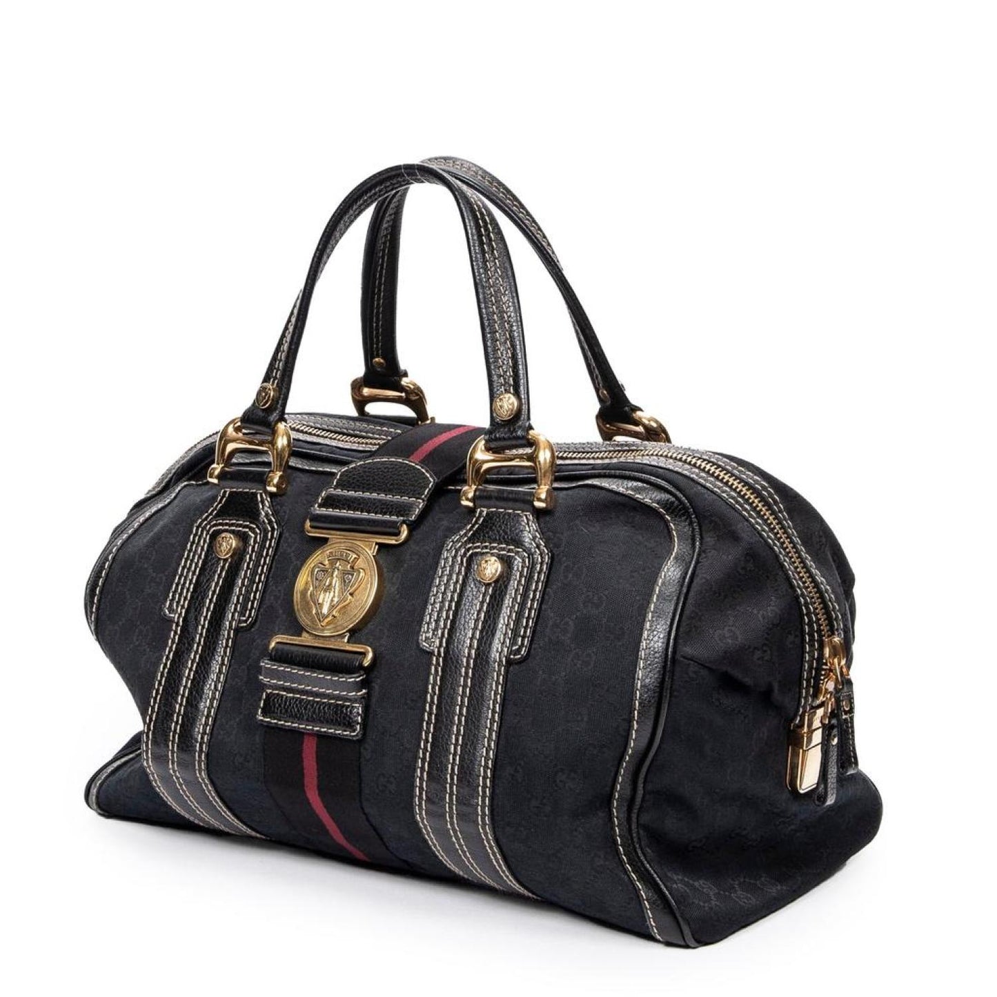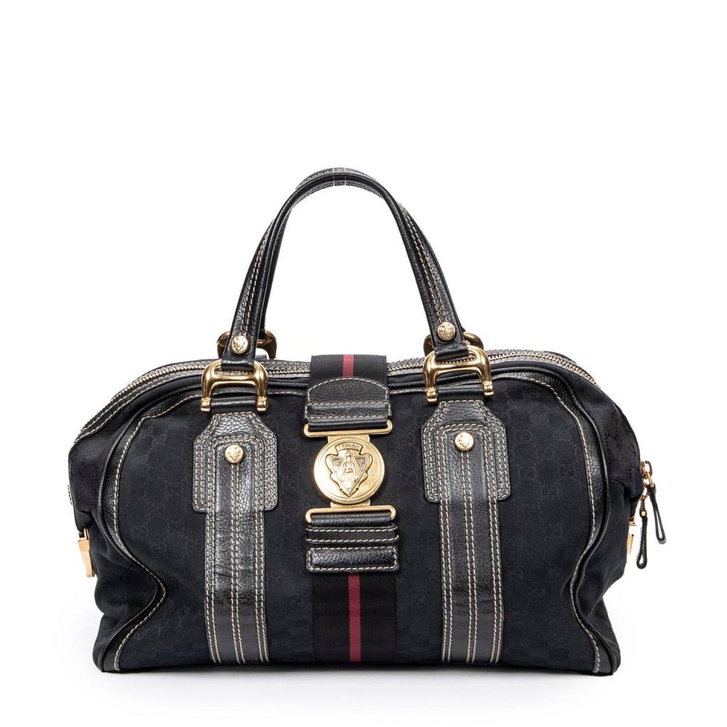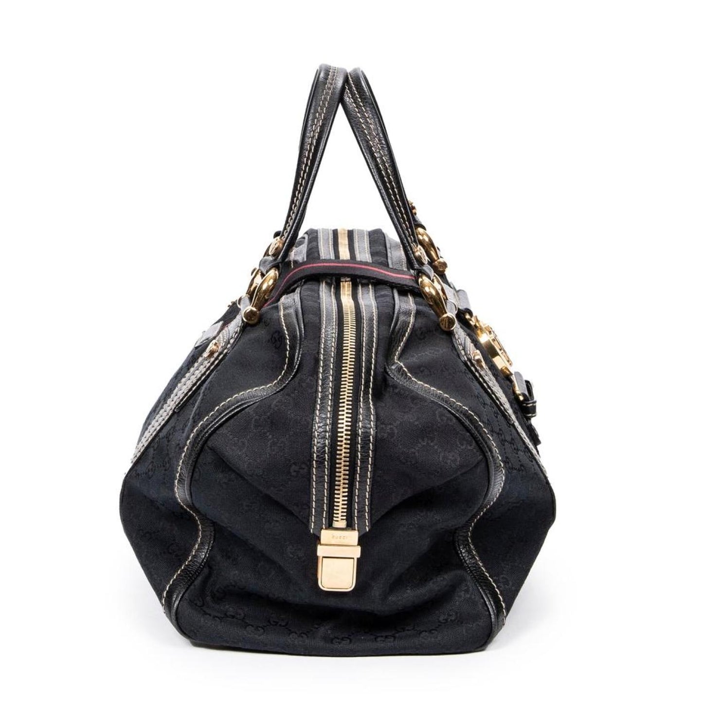 Gucci Travel Bag in Black Monogrammed Canvas and Gold hardware. Dimensions - 40*25*22cm. Serial number - 186232 492783. Inclusions - None. Pre-Owned