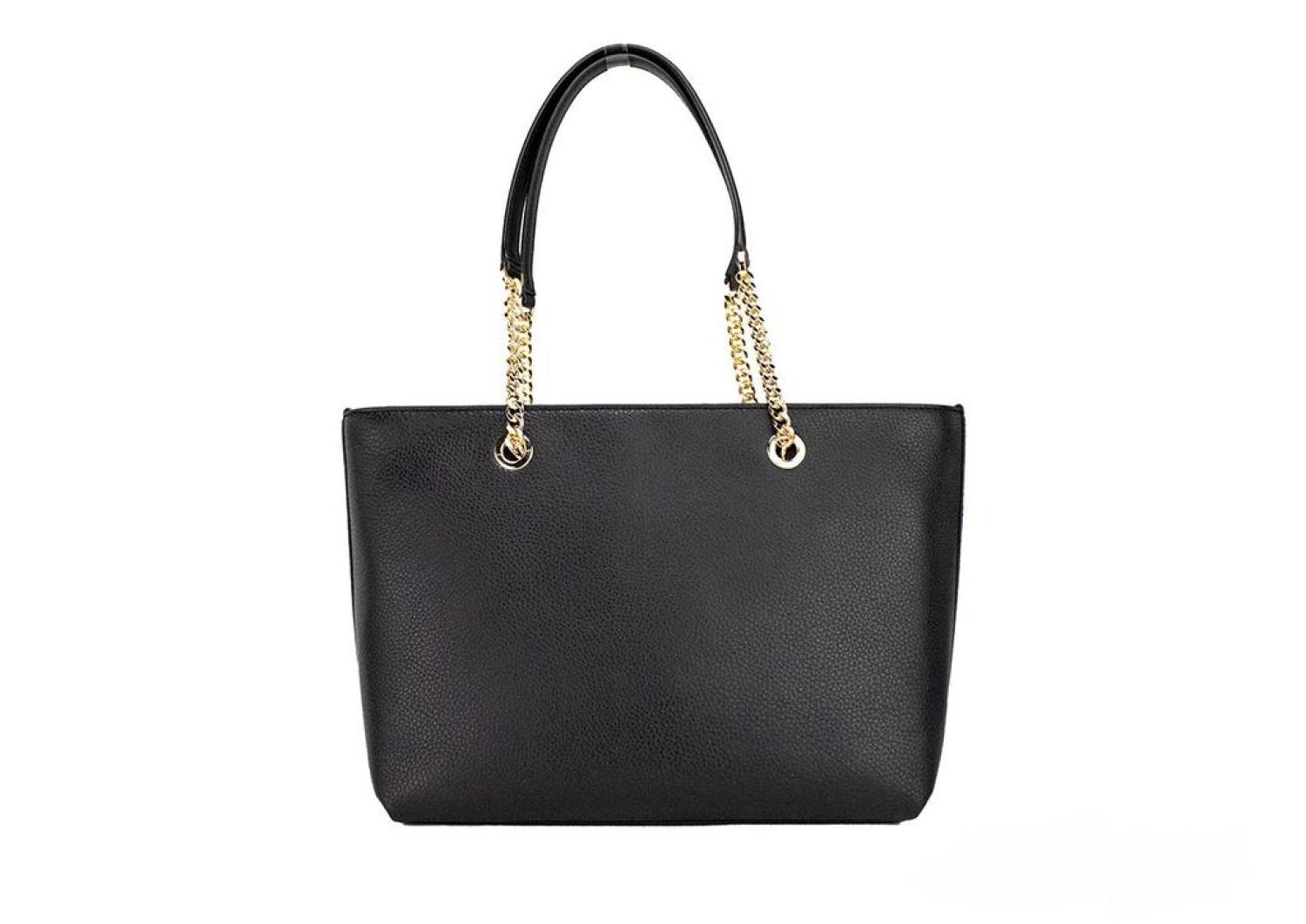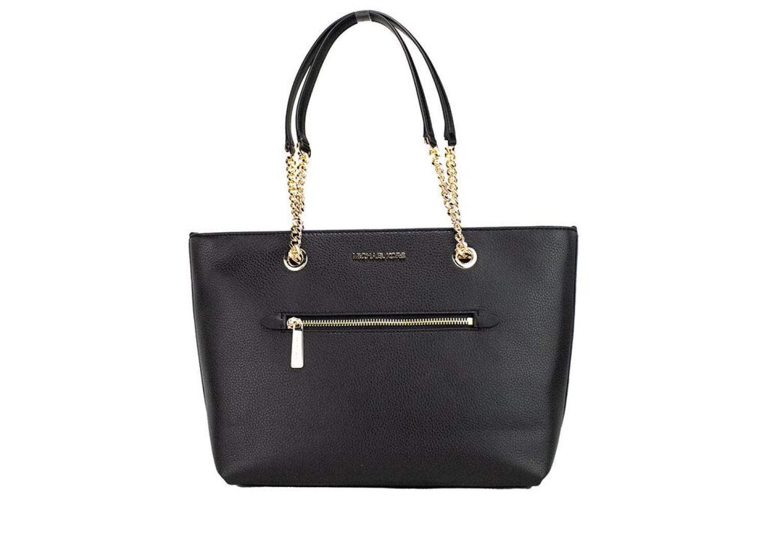 Style - Michael Kors Jet Set Medium Front Zip Chain Tote Bag (Black)Material - Pebbled LeatherFeatures - Inner Zip and Slip Pockets, Fabric Lined, Outer Zip PocketMeasures - 38.1 cm W x 24.13 cm H x 12.7 cm D