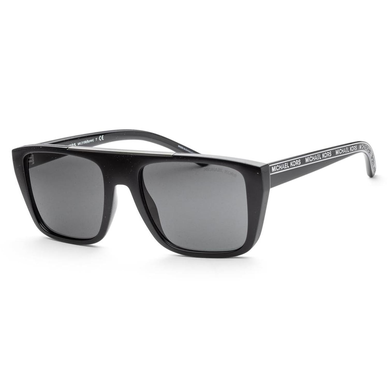 Dimensions - 55 mm x 19 mm x 145 mm. The frame is Plastic Rectangular shaped. The frame is Black and the lens is Dark Grey Solid.