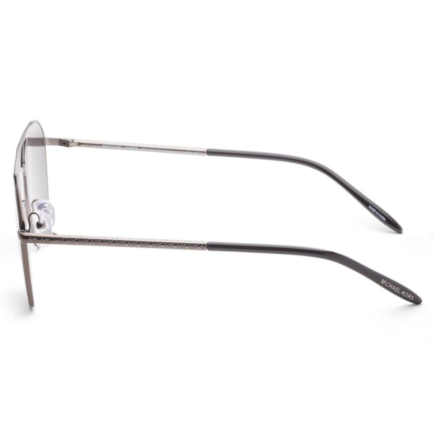 • The Michael Kors men's Sunglasses measure at 56 mm lens width, 16 mm bridge width, and 145 mm arm length. The frame is aviator-shaped matte gunmetal metal. The lenses are non-polarized dark grey solid. Made in China (MK1124-100287)
