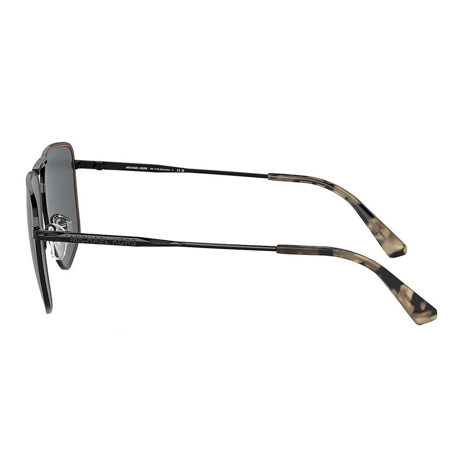 • Michael Kors SILVERTON MK 1153 100587 58mm Womens Shiny Black Grey Lens SunglassesFrame Color - Shiny BlackFrame Style - PilotFrame Material - MetalLens Color - Grey LensProtection - UV ProtectedIncludes - Michael Kors case, cloth and paperwork *may vary from pictureSize - Lens 58 mm x bridge 15 mm x arms 145 mm All measurements may vary