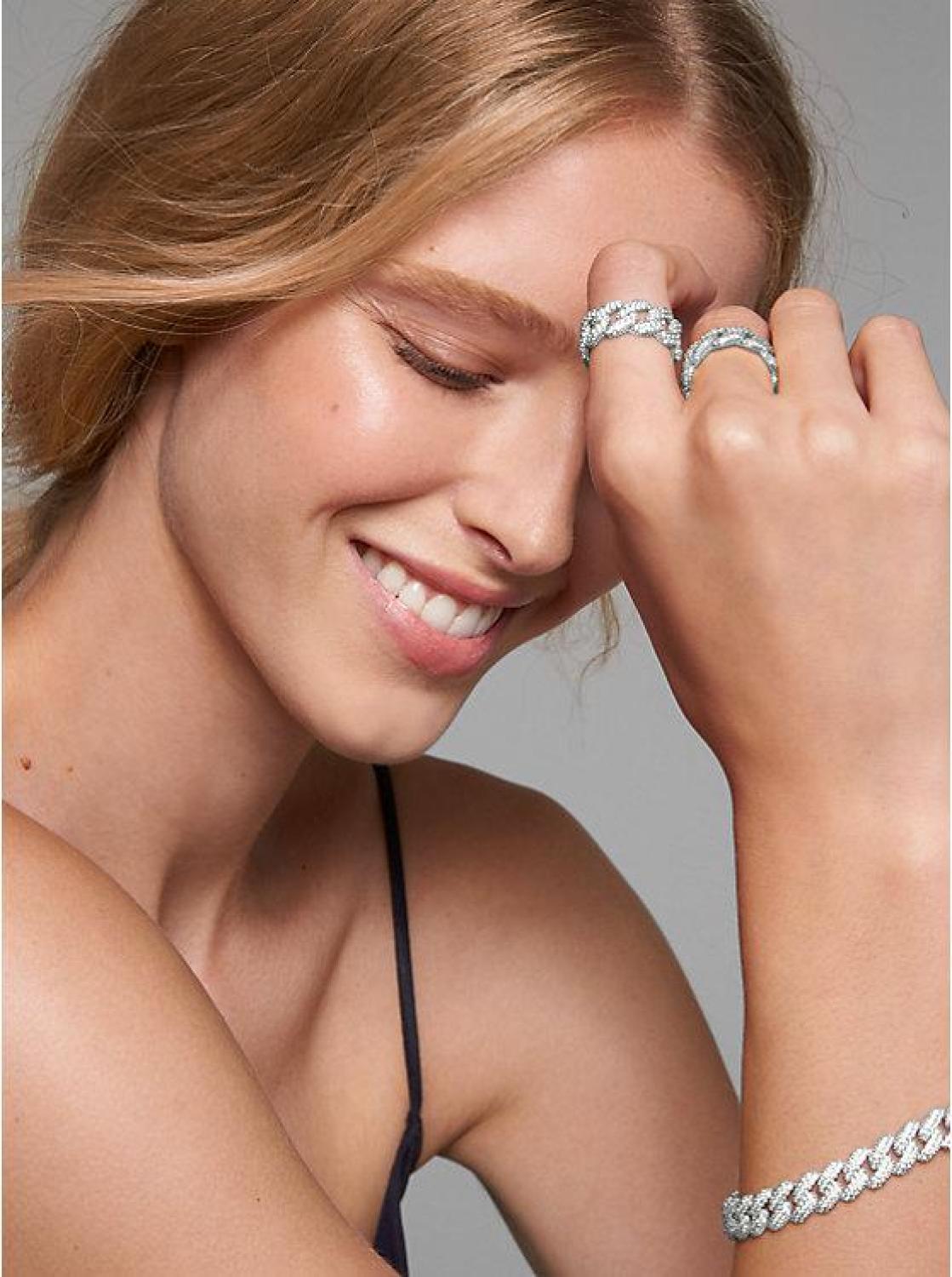 Crafted from sterling silver and available in two elevated platings, this curb-link ring is punctuated with cubic zirconia pavé accents for a luxe sensibility. Layer it with other styles or wear it alone for a more understated look. Ring Sterling silver Available in: 14K gold plating, rhodium plating Cubic zirconia pavé 0.7” inner circumference Imported Ring Sterling silver Available in: 14K gold plating, rhodium plating Cubic zirconia pavé 0.7” inner circumference Imported