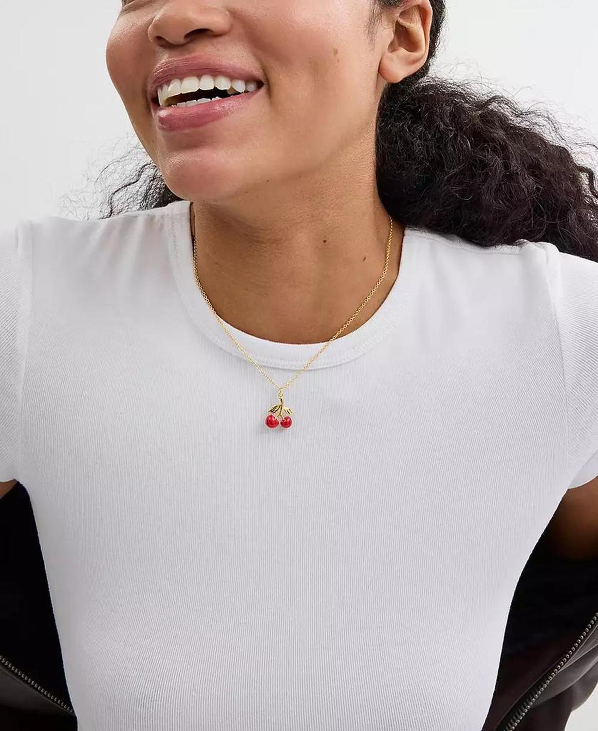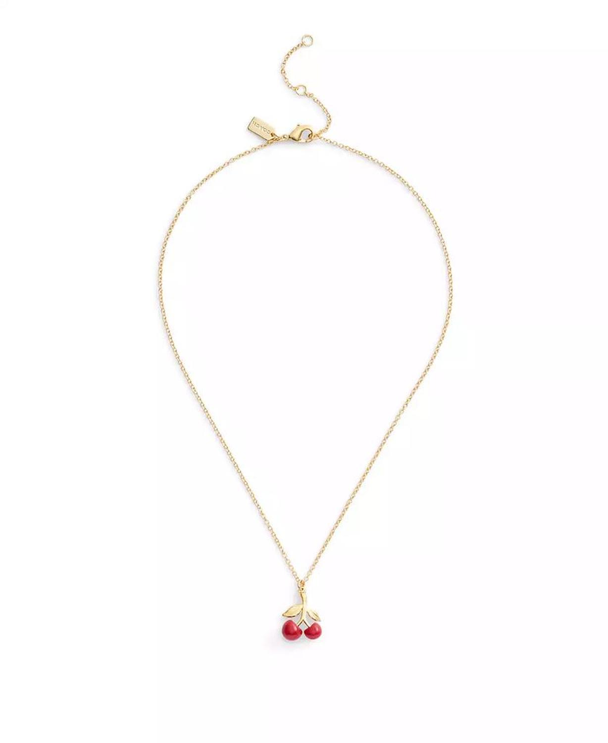 Refined chain necklace featuring vibrant red cherry cluster pendant perfect for every day. Set in polished gold-tone finish brass Approx. length: 16" + 2" Extender Approx. Pendant Drop: 3/4" Approx. Pendant Width: 3/5" Lobster clasp closure Type of chain: cable Includes signature COACH jewelry dustbag Wipe clean Imported