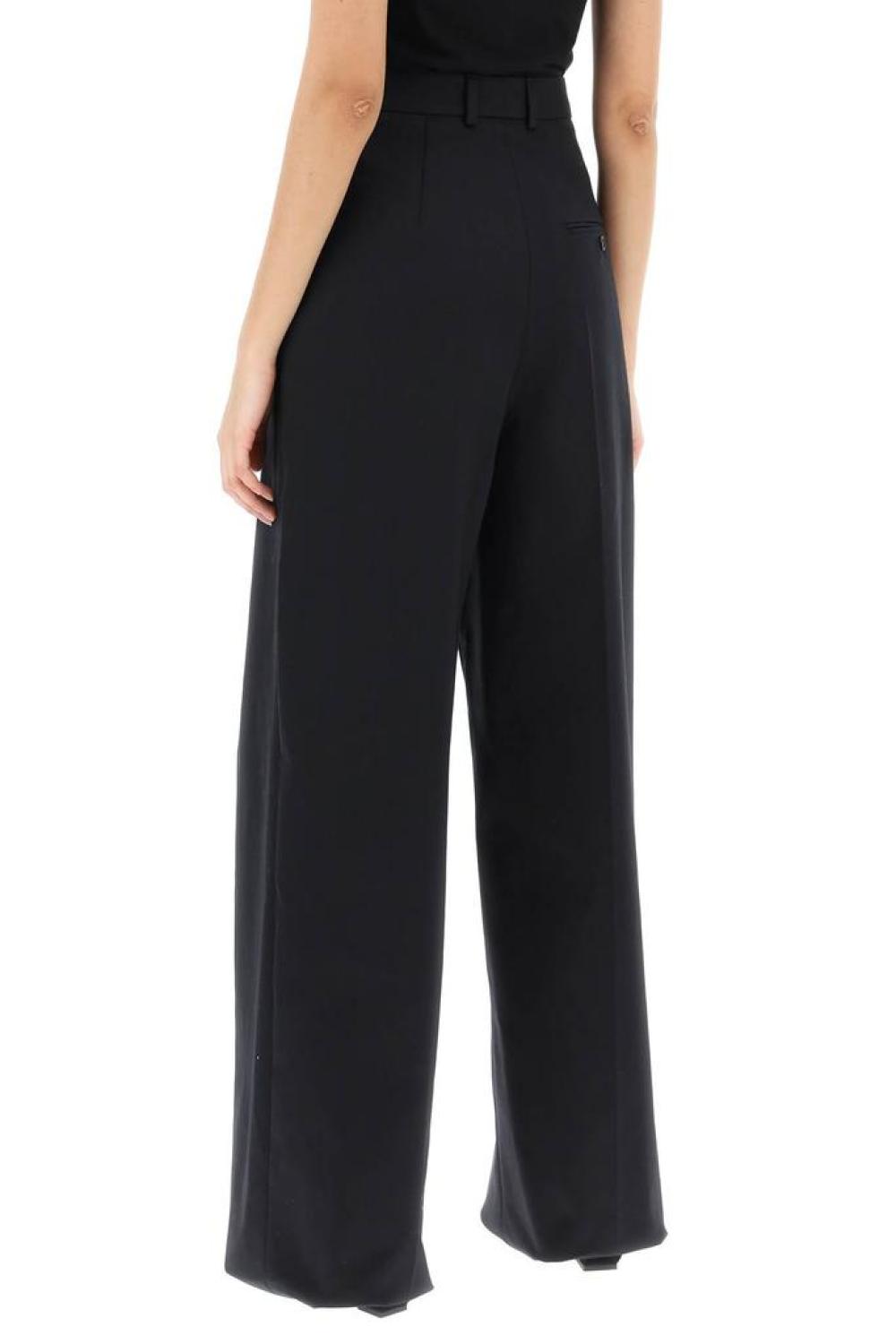 • Sportmax straight and wide-leg pants with a high waistline, featuring deep front pleats that create a layered effect. Made of cotton twill, they are finished with belt loops, a front zip and button closure, side pockets, and a welt pocket with a button on the back. The model is 177 cm tall and wears size IT 40.