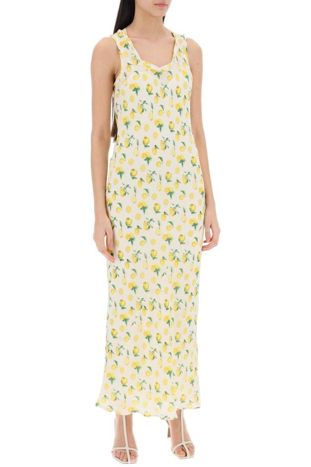 • This Sportmax sleeveless maxi dress is made of printed georgette silk and finished with braided trims. It comes with a removable matching slip. The regular fit features a straight silhouette and bias cut. The model is 177 cm tall and wears an IT size 38.