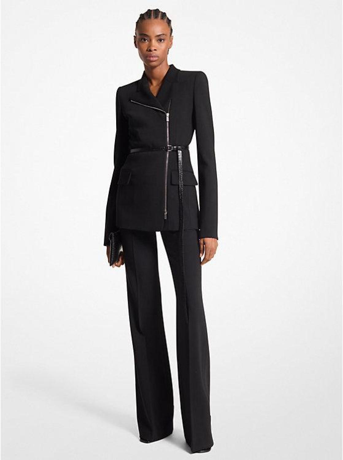 Designed in Italy from luxe stretch wool and finished with an asymmetrical zipper closure, this blazer features tailored details like flap pockets and structured shoulders. Create a modern suiting moment when you team it with slim trousers.