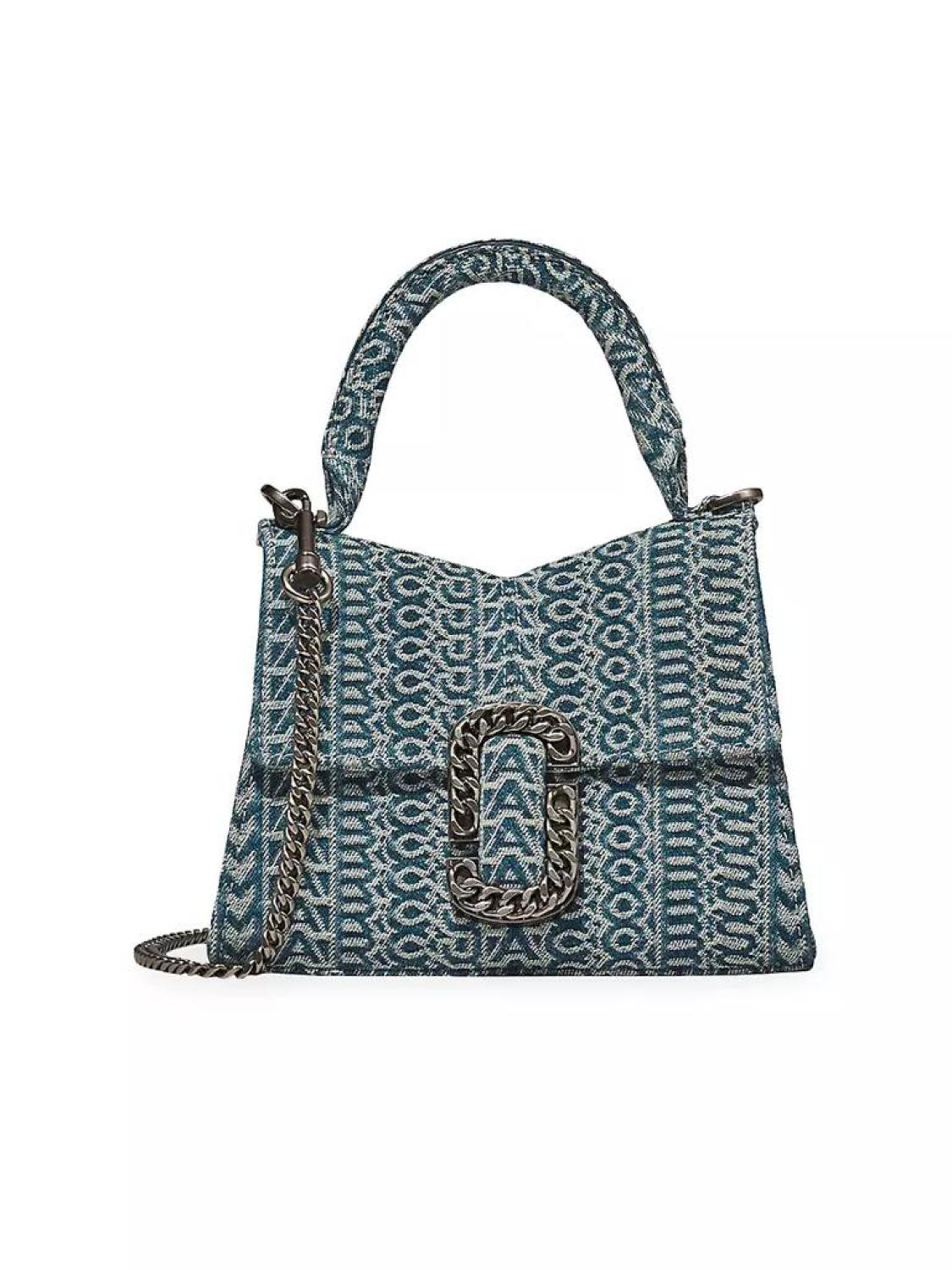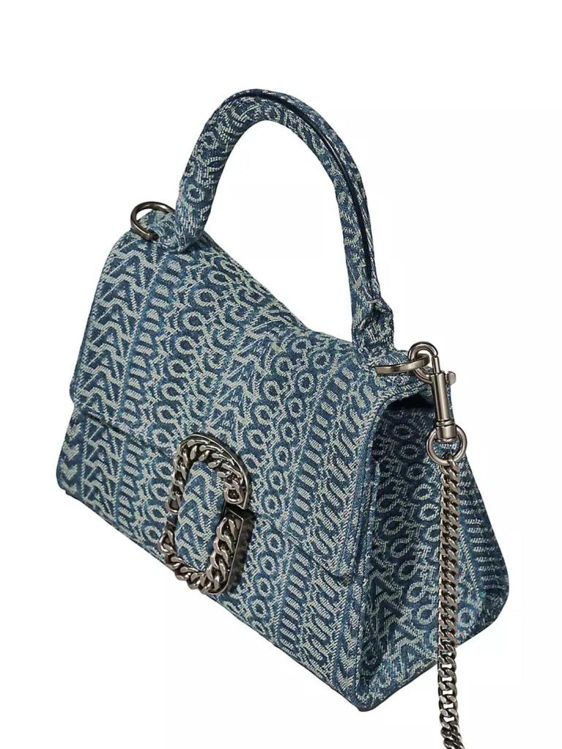 Crafted of bleached denim with a monogram pattern, the Mini Top-Handle Bag from Marc Jacobs is finished with chain-link J Marc hardware. Top handle Removable crossbody chain strap Interior: two card slots Magnetic closure 100% cotton Imported SIZE About 7.25"W x 5.5"H x 3.5"D Top handle, about 3.75" drop Crafted of bleached denim with a monogram pattern, the Mini Top-Handle Bag from Marc Jacobs is finished with chain-link J Marc hardware.Top handleRemovable crossbody chain strapInterior: two card slotsMagnetic closure100% cottonImportedSIZEAbout 7.25"W x 5.5"H x 3.5"DTop handle, about 3.75" drop