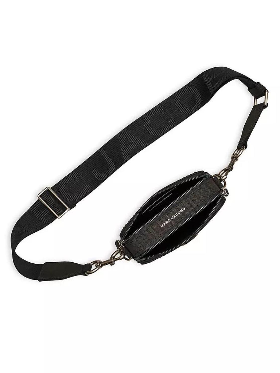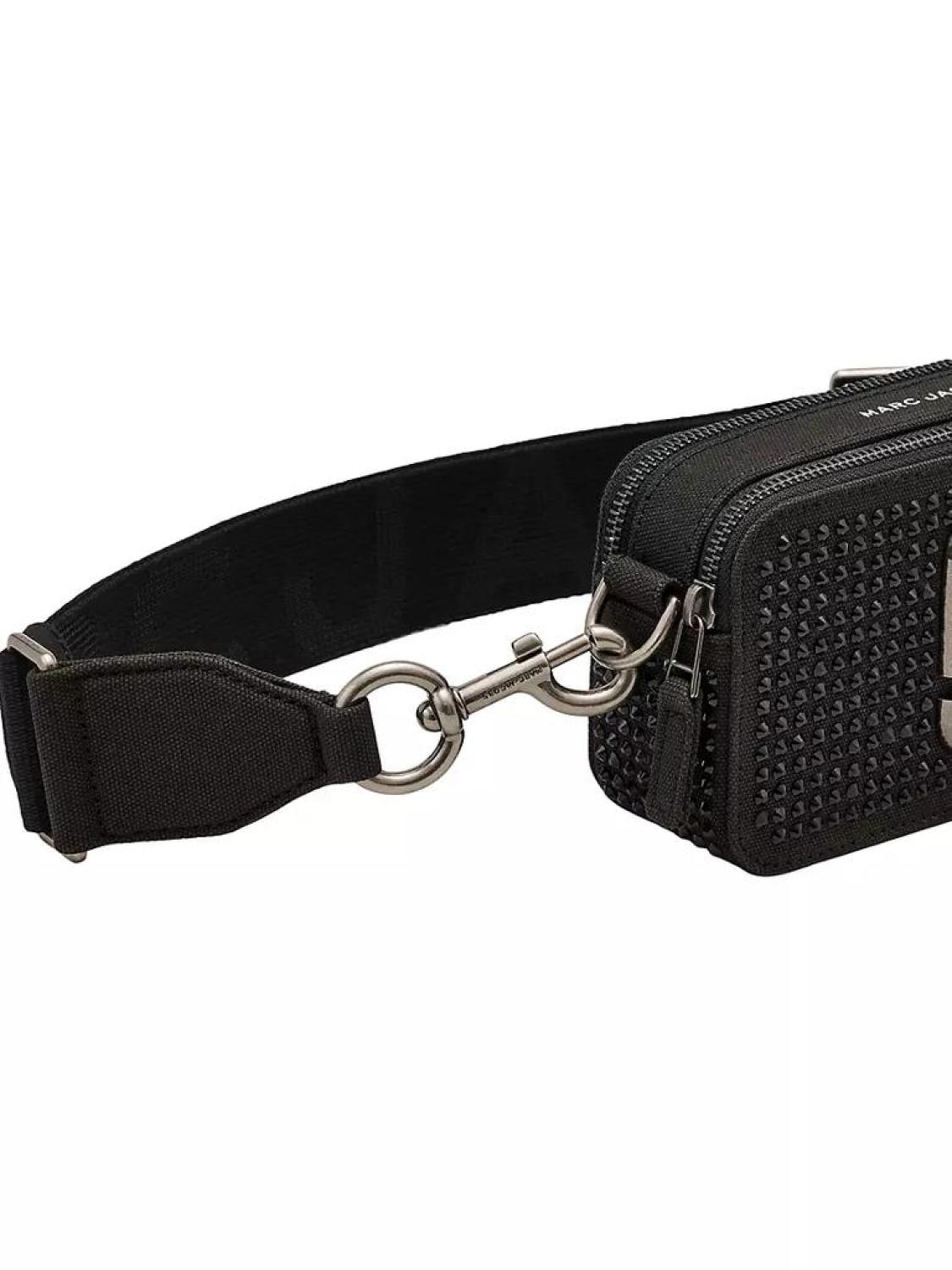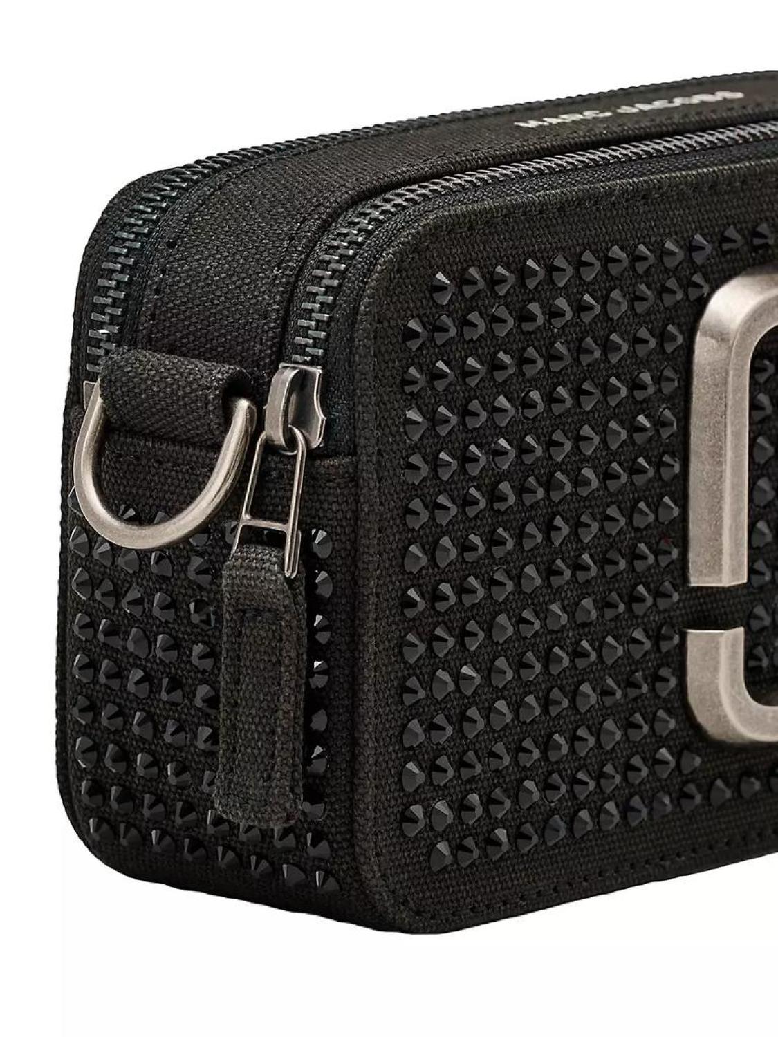 • Crafted of crystal-embellished canvas, the Snapshot bag from Marc Jacobs is finished with J Marc hardware and a removable logo webbing strap.