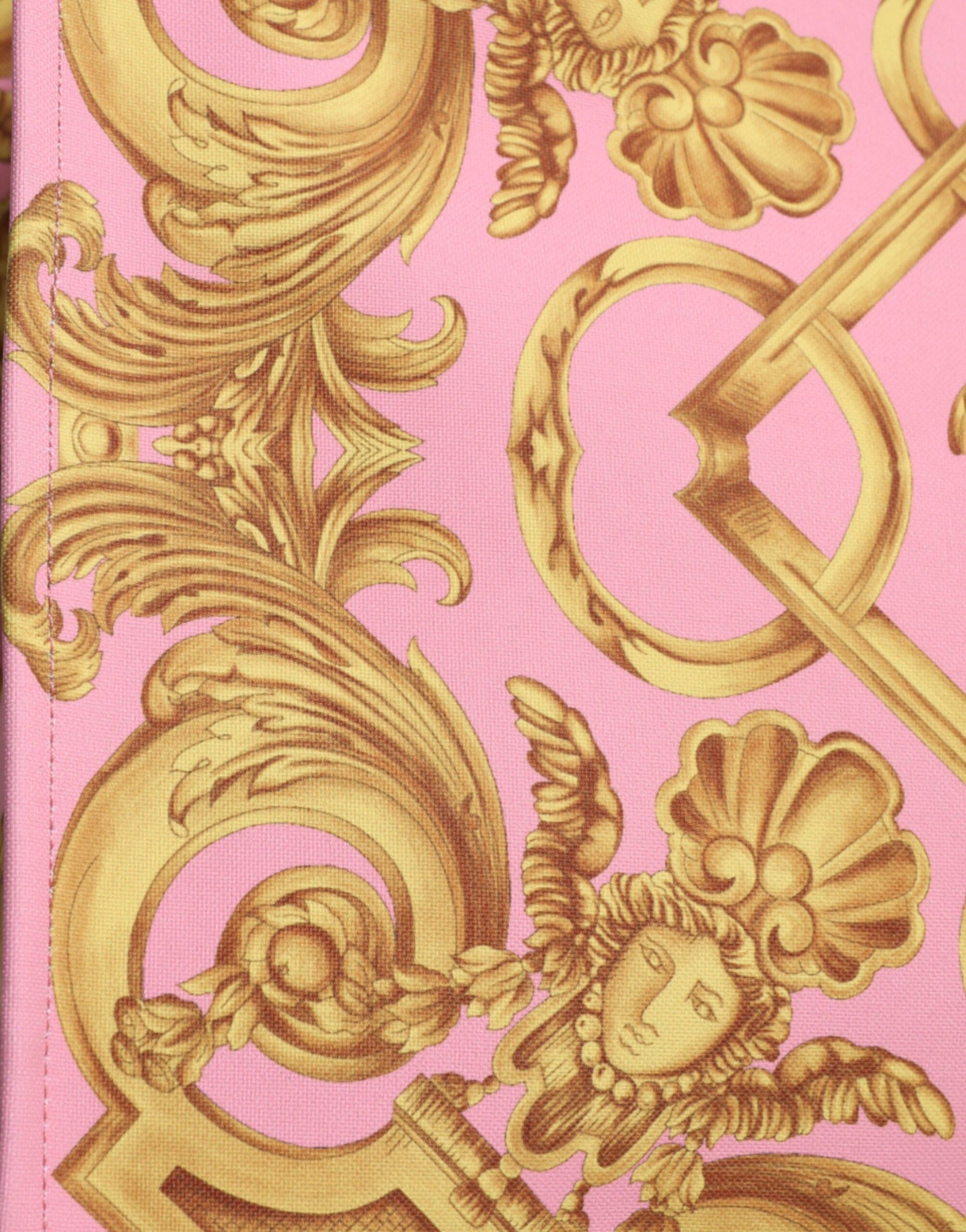 Versace Pink Printed Large Fabric Leather Shopping Tote Bag