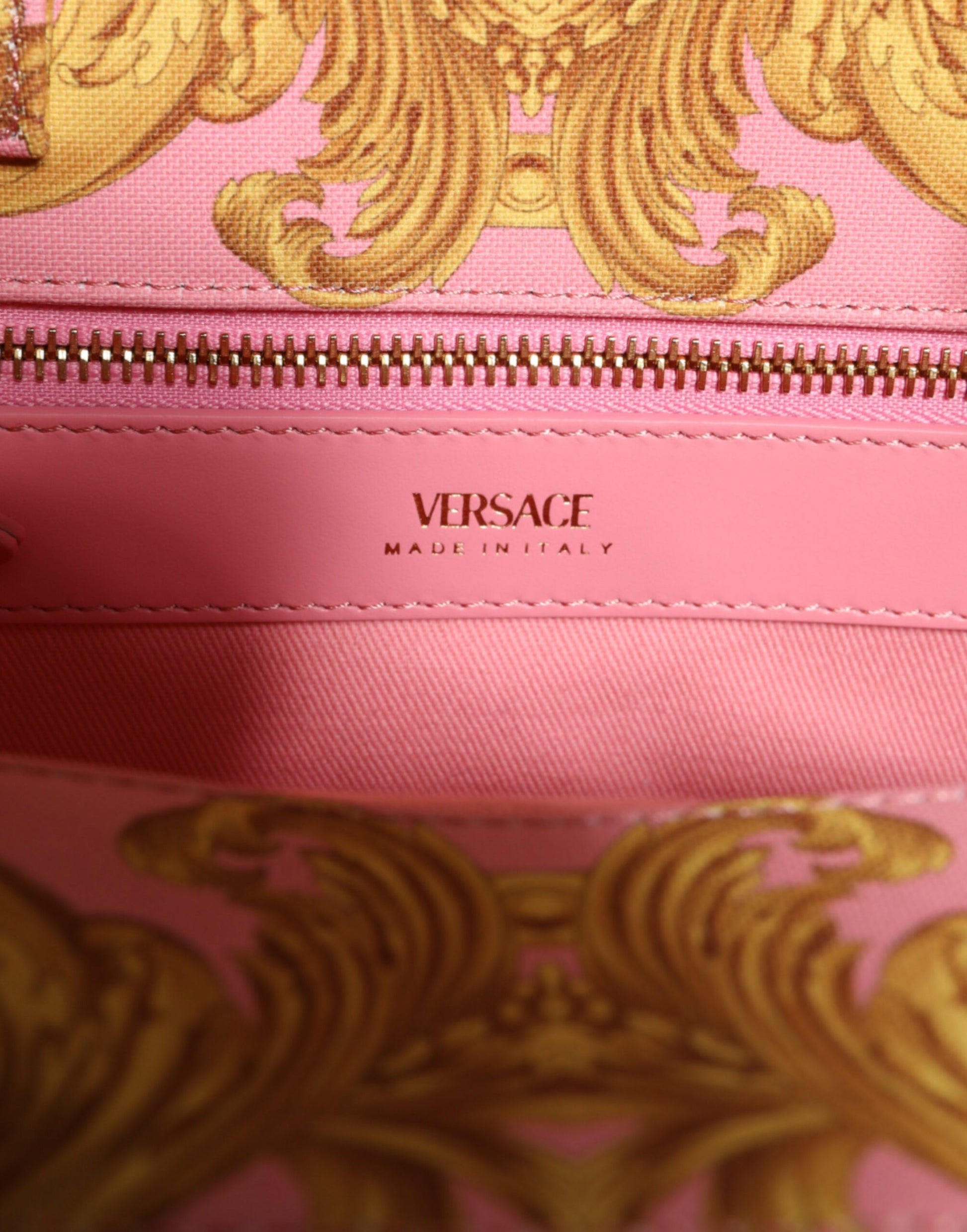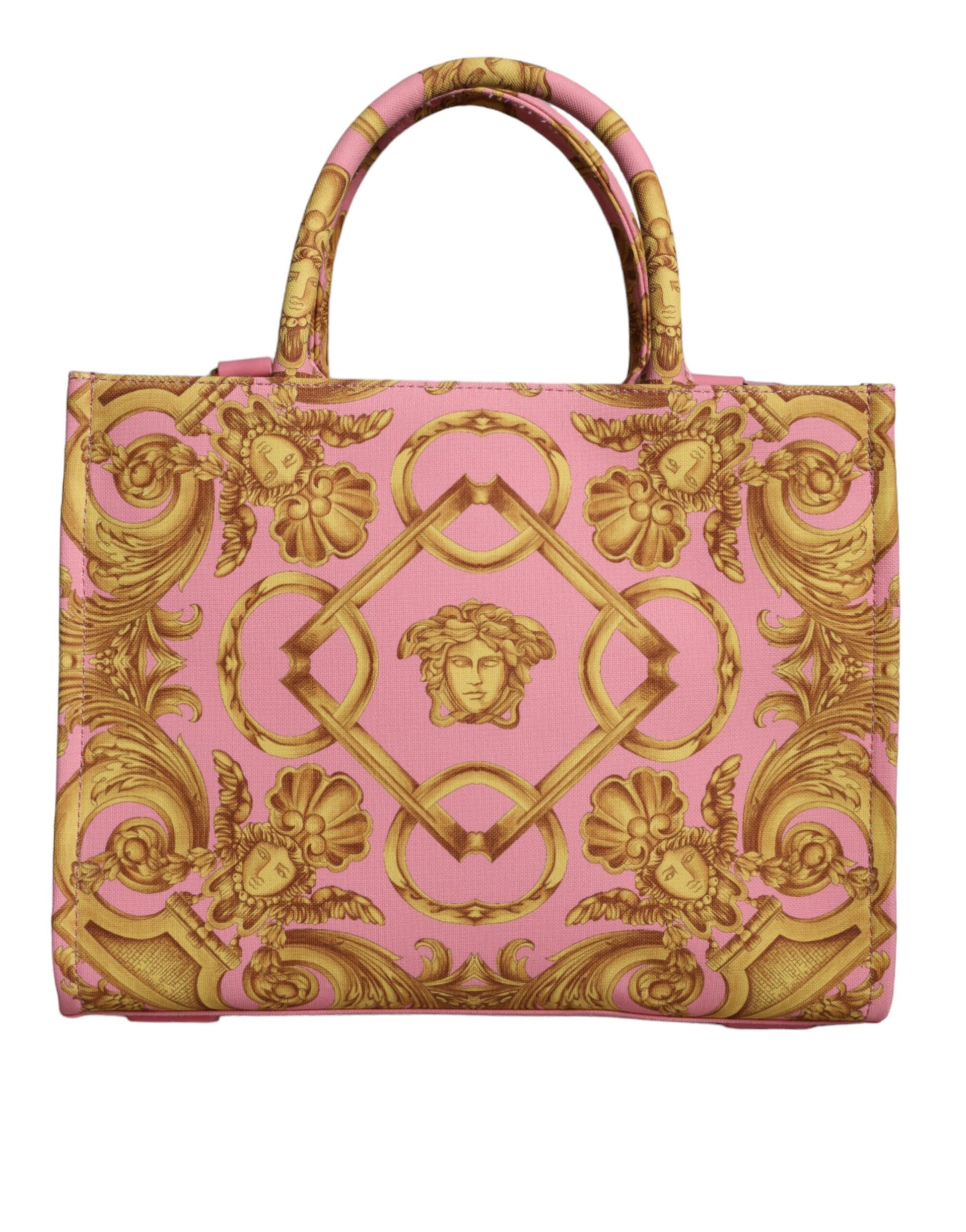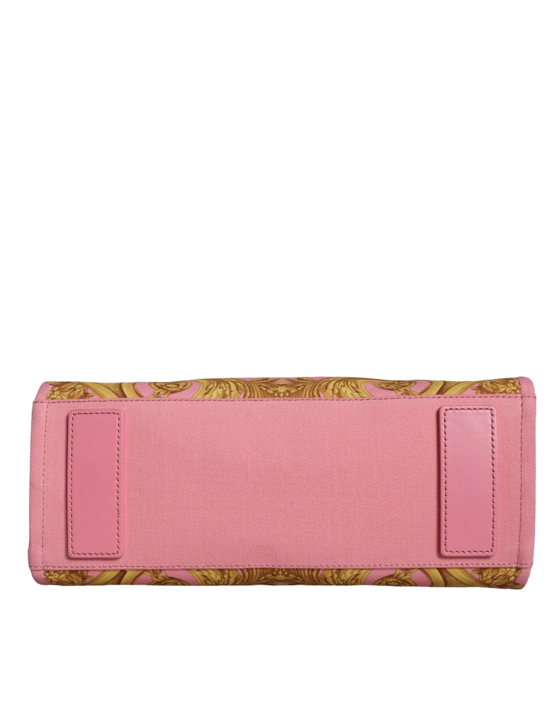 Versace Pink Yellow Baroque Fabric Leather Shopping Tote Bag