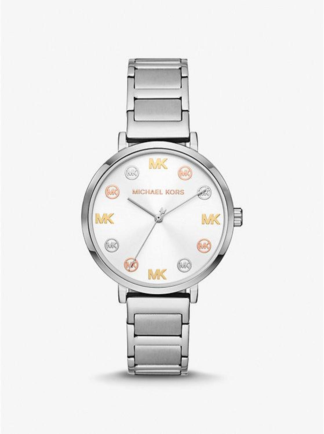 Nothing says sophistication quite like the Addyson. A polished timepiece with signature appeal, this classic watch features a silver-tone stainless steel bracelet and slim 38mm case, making it a chic option for day. The dial is punctuated with logo time stops powered by a reliable quartz movement.