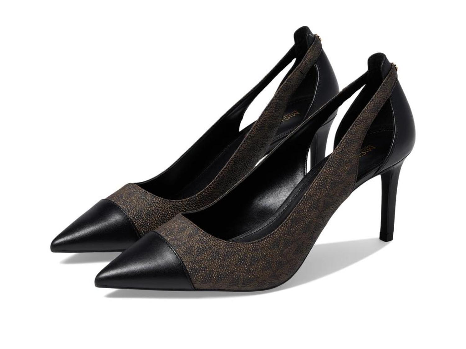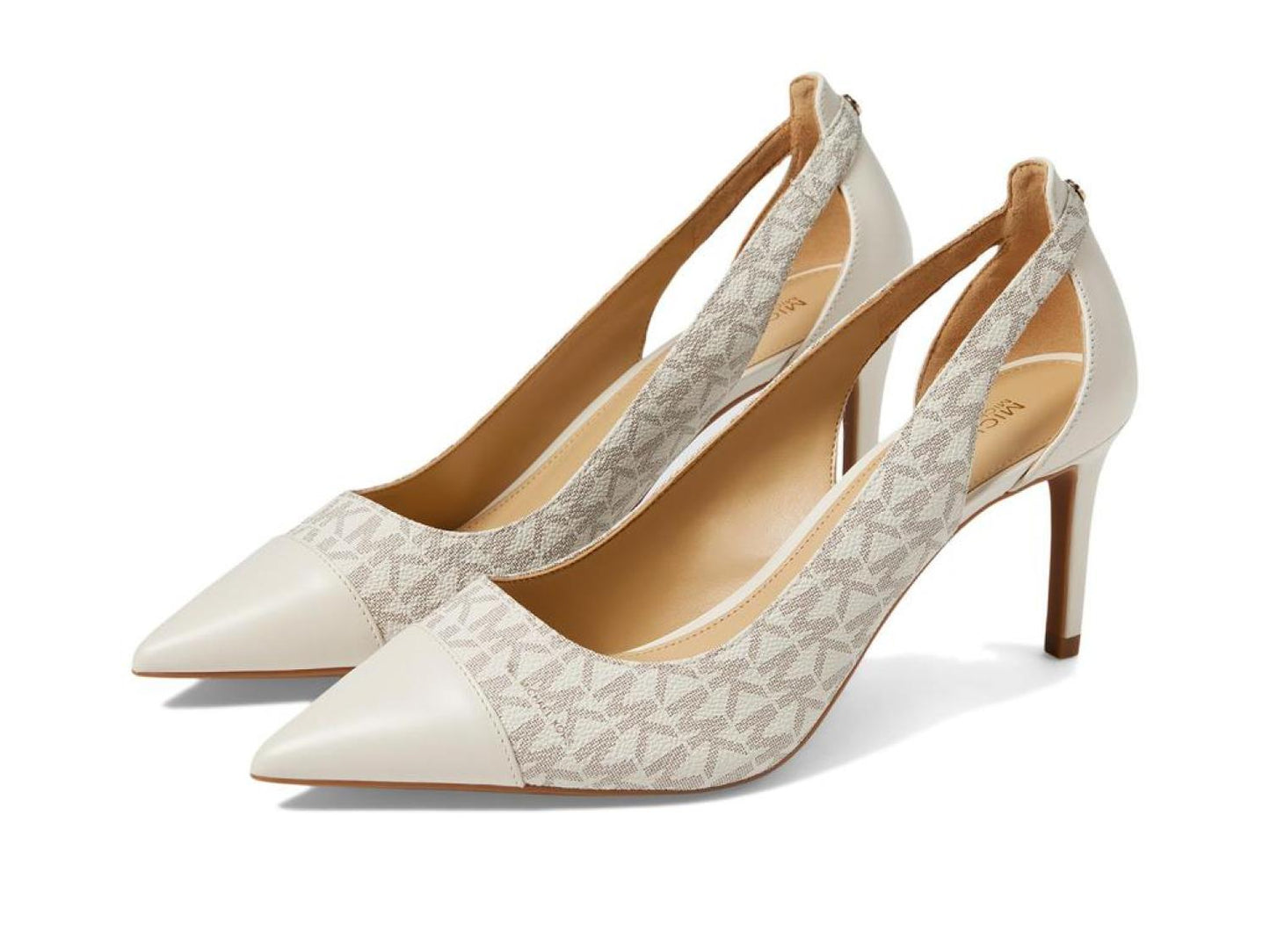 • Walk the red carpet in utmost sophistication wearing the MICHAEL Michael Kors® Adeline Flex Pumps. Featuring stiletto heels, this slip-on footwear has leather and synthetic upper with signature logo embossed detail.